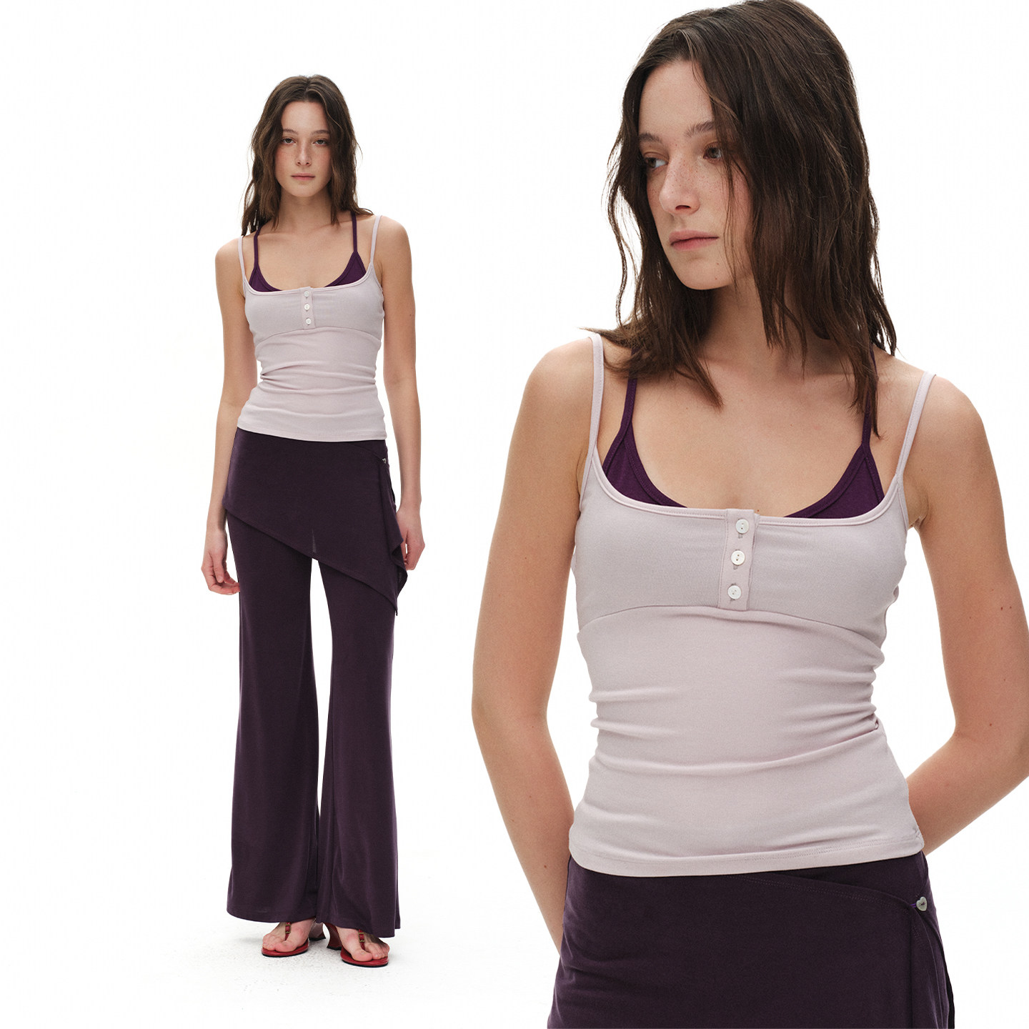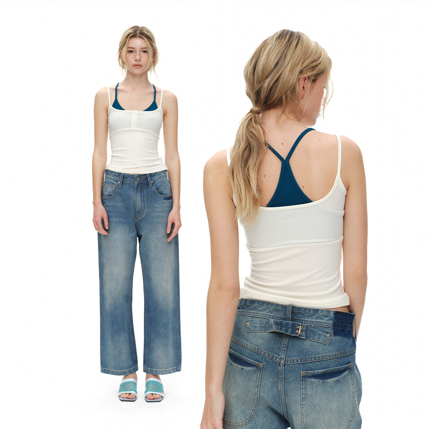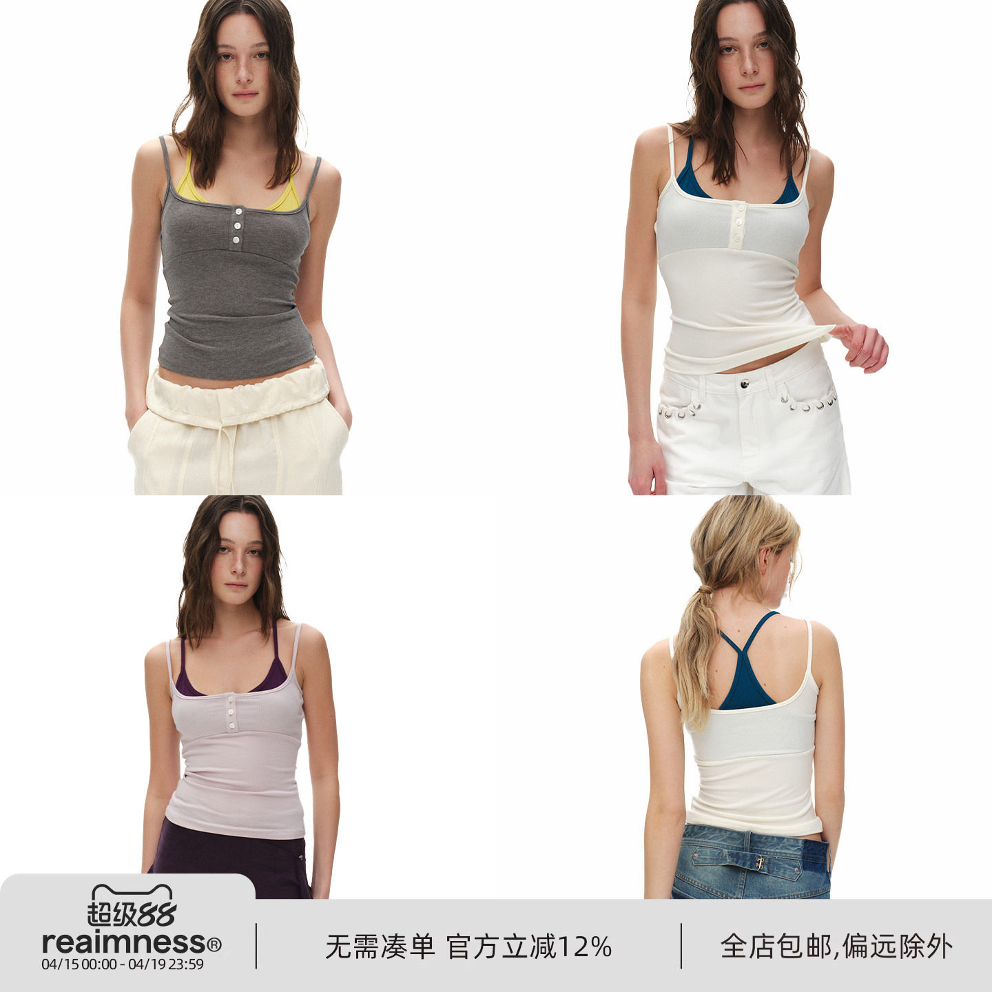 ReAimNess* 活人感 假两件撞色亨利领显瘦百搭内搭外穿吊带背心女