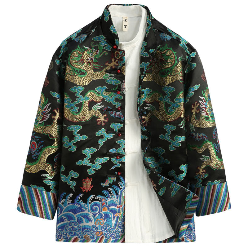 --------------------- 唐装男冬季新款刺绣龙袍外套男国潮中式改良盘扣上衣男新年唐装男 【原售价】1198元 【现售价】602元 【推荐理由】