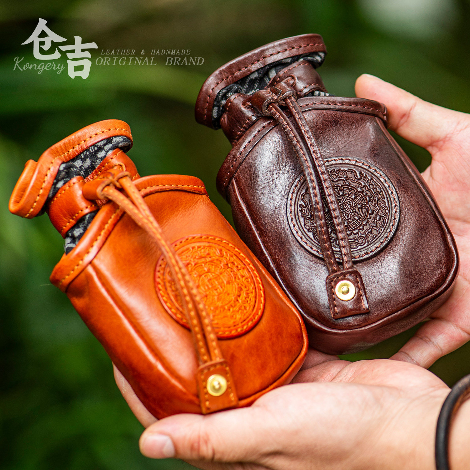 【九宫锦囊】神仙文玩收纳袋!仓吉手工牛皮核桃手串福袋便携腰包