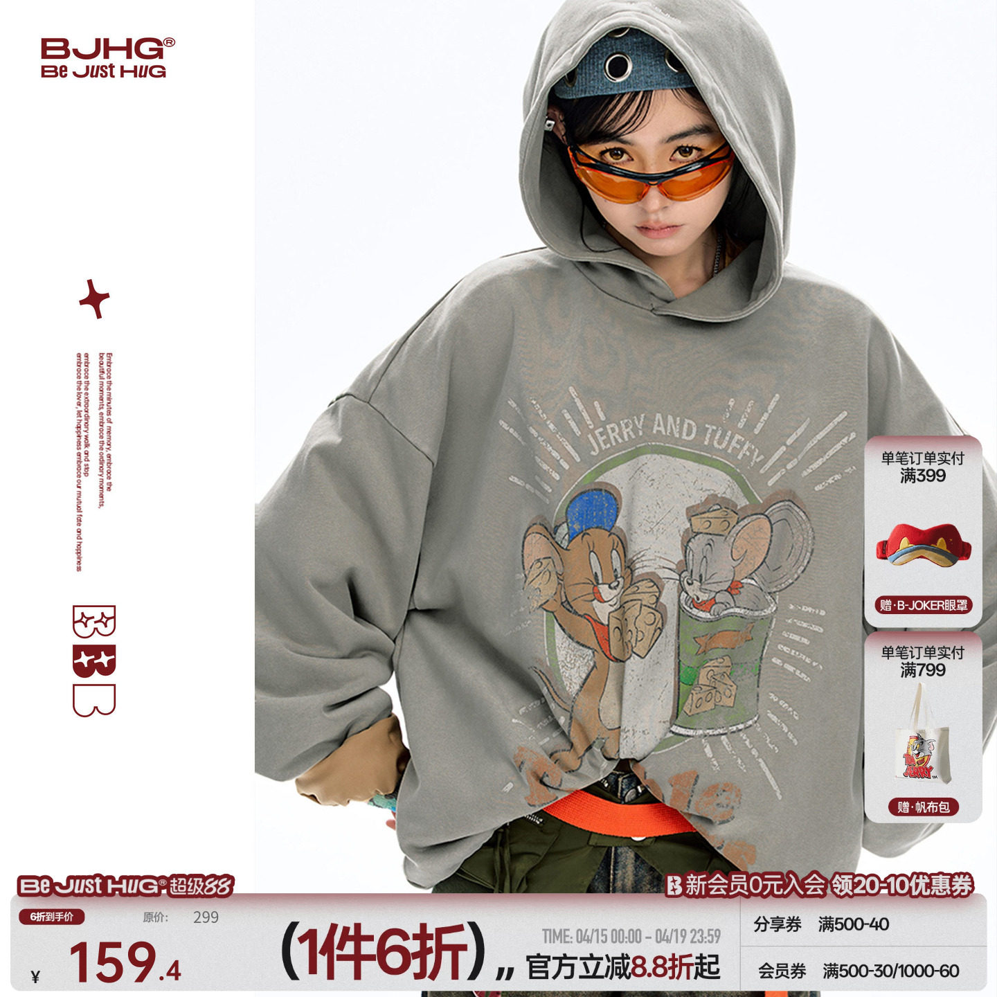--------------------- 【猫和老鼠联名】BJHG不计后果美式连帽卫衣男款春季情侣款外套女 【原售价】349元 【现售价】159元 【推荐理由】