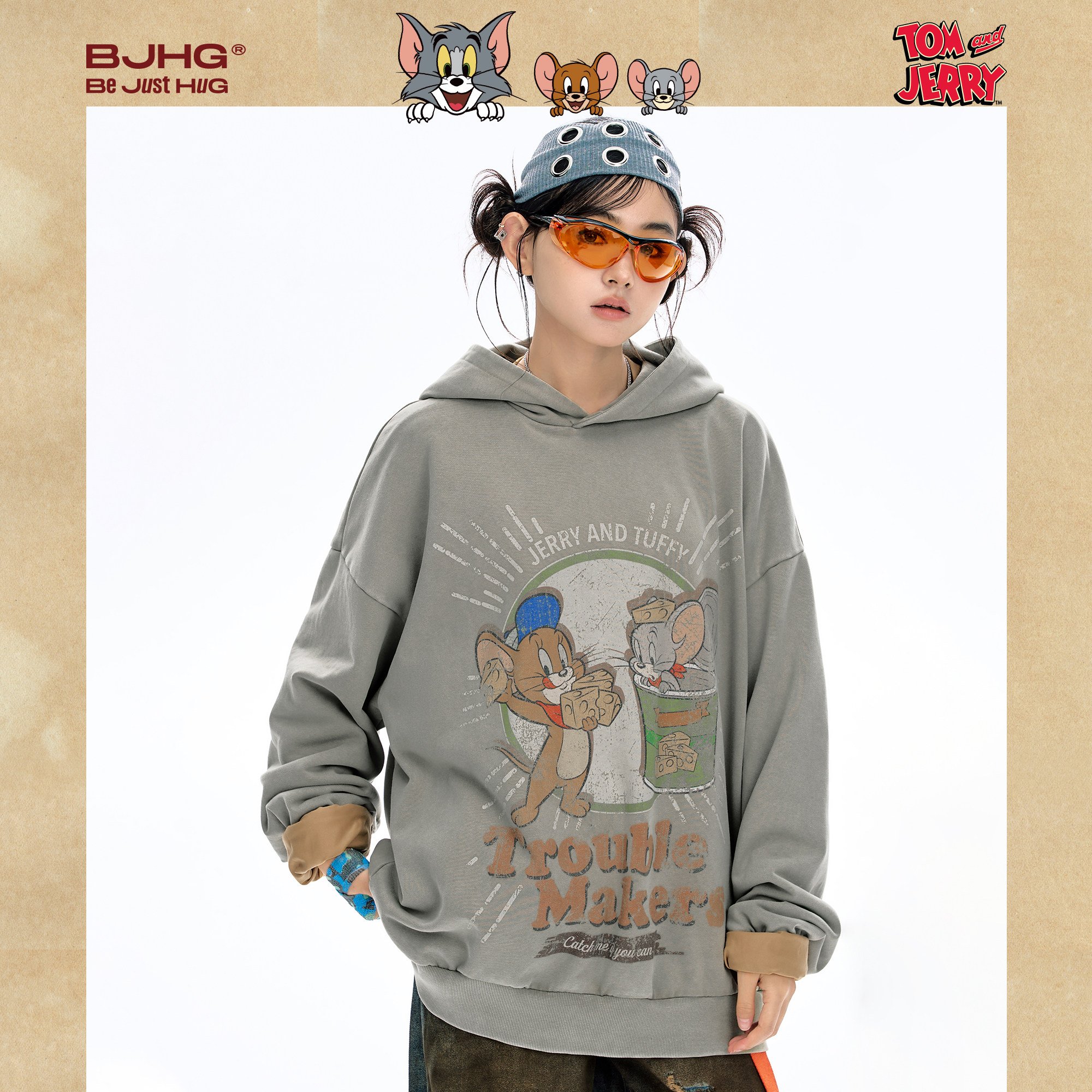 【猫和老鼠联名】BJHG不计后果美式连帽卫衣男款春季情侣款外套女