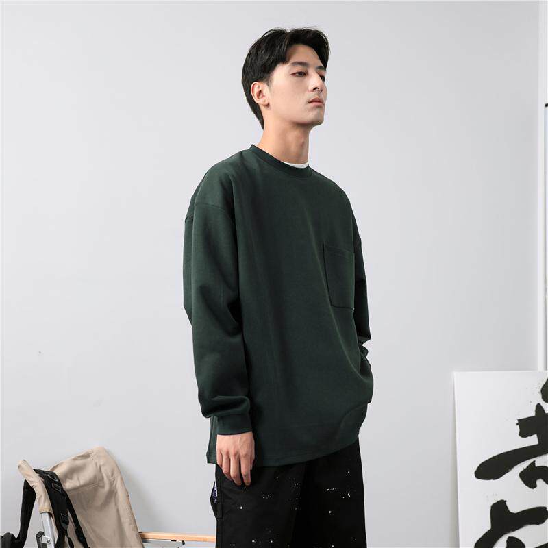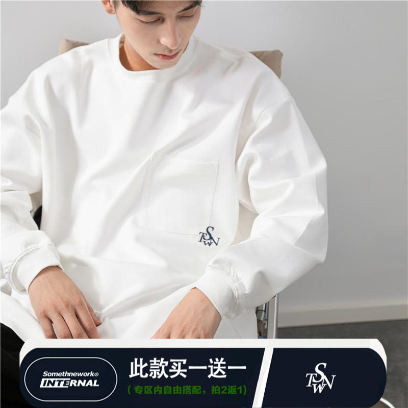 STNW 圆领针织情侣纯棉长袖t恤男女 春秋刺绣简约打底衫内搭