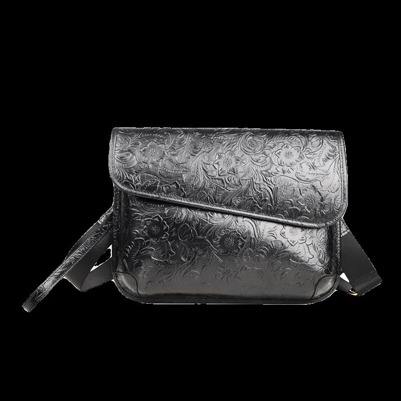 头层牛皮斜挎包男手工真皮单肩包休闲唐草纹国潮邮差包多功能手包