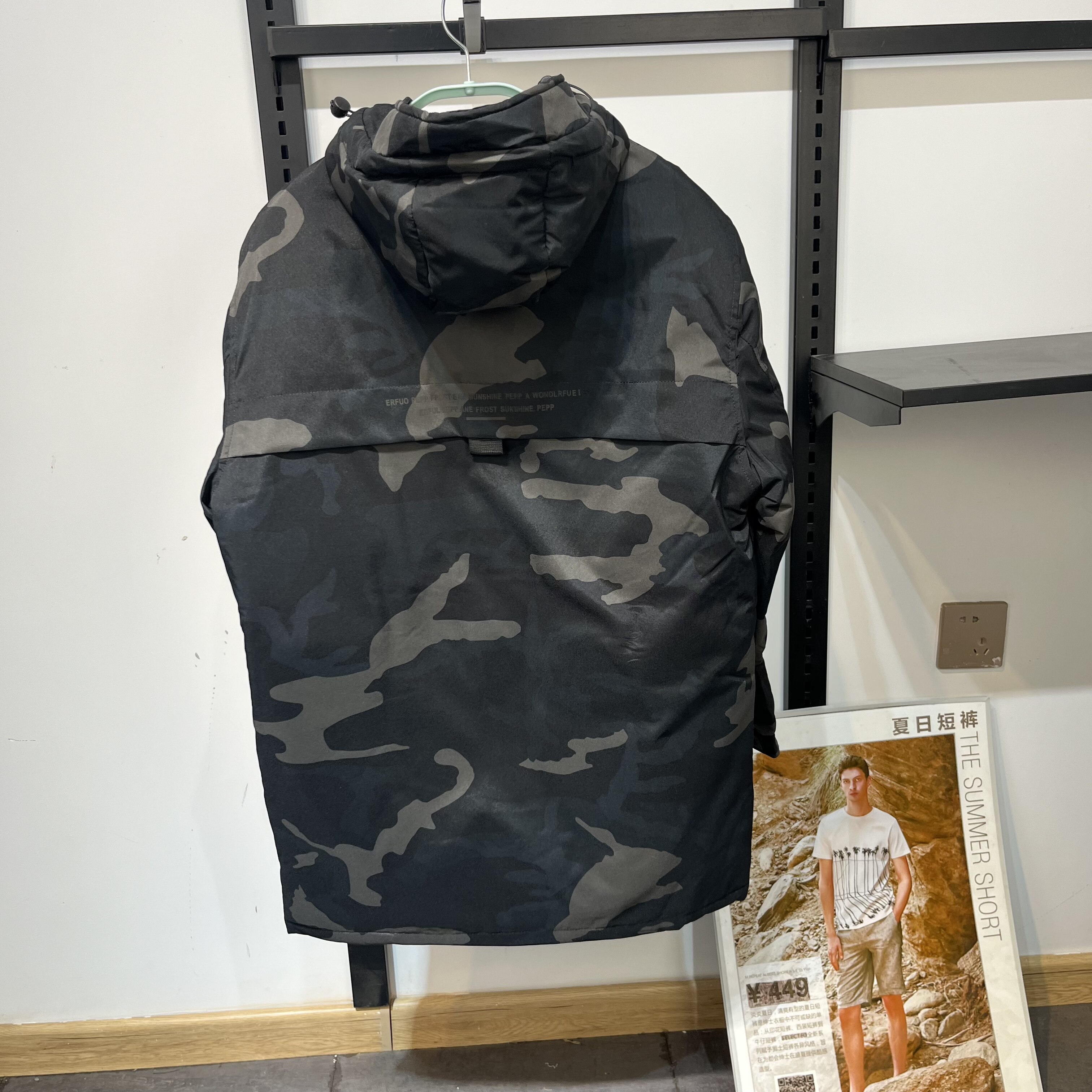--------------------- 断码特价男士冬季修身连帽中长款迷彩黑色保暖加厚羽绒服连帽外套 【原售价】79元 【现售价】69.5元 【推荐理由】