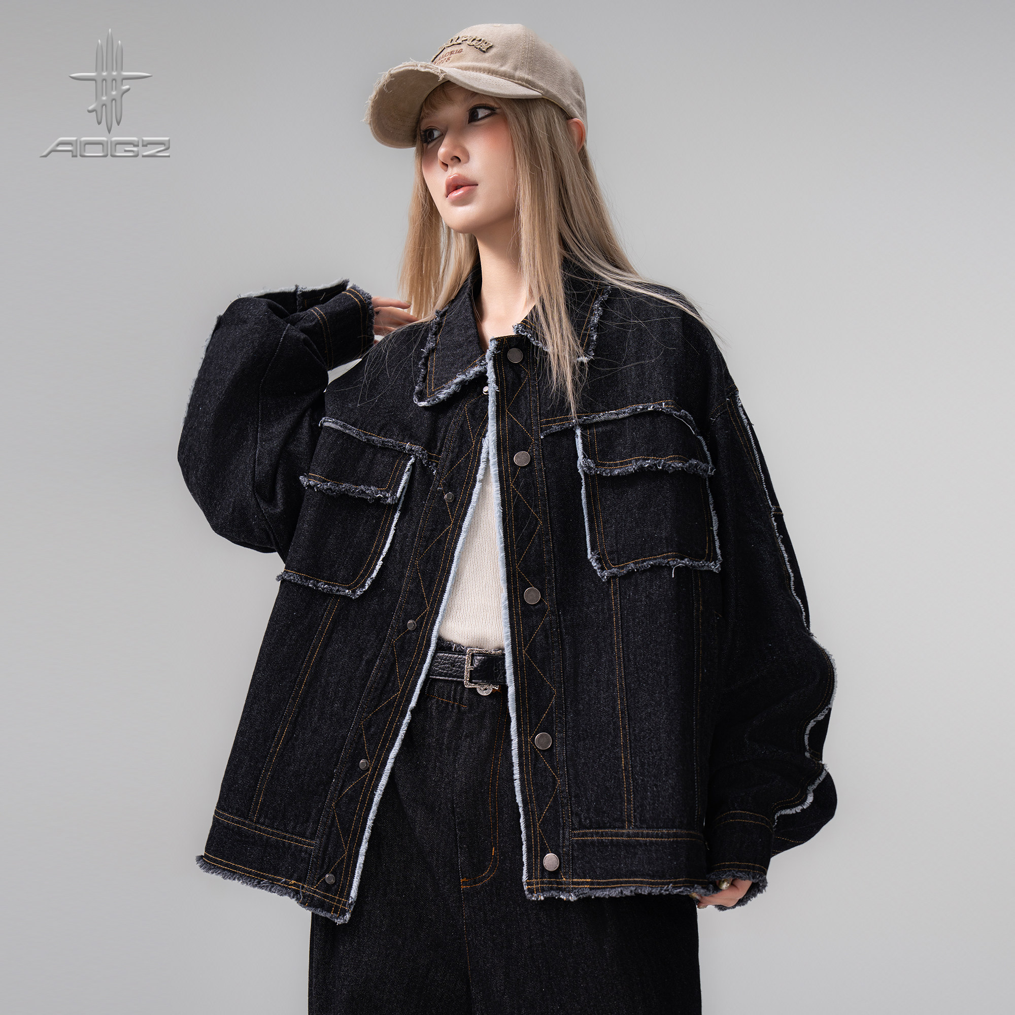--------------------- AOGZ美式潮牌辑明线毛边牛仔外套男女生2026春季新款宽松休闲夹克 --------------------- --------------------- 【原价】249元 【券后价】179元