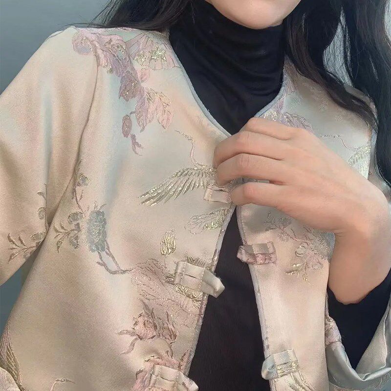 新中式国潮e风复古盘扣绸缎提花开衫外套女高级感时尚气质唐装上