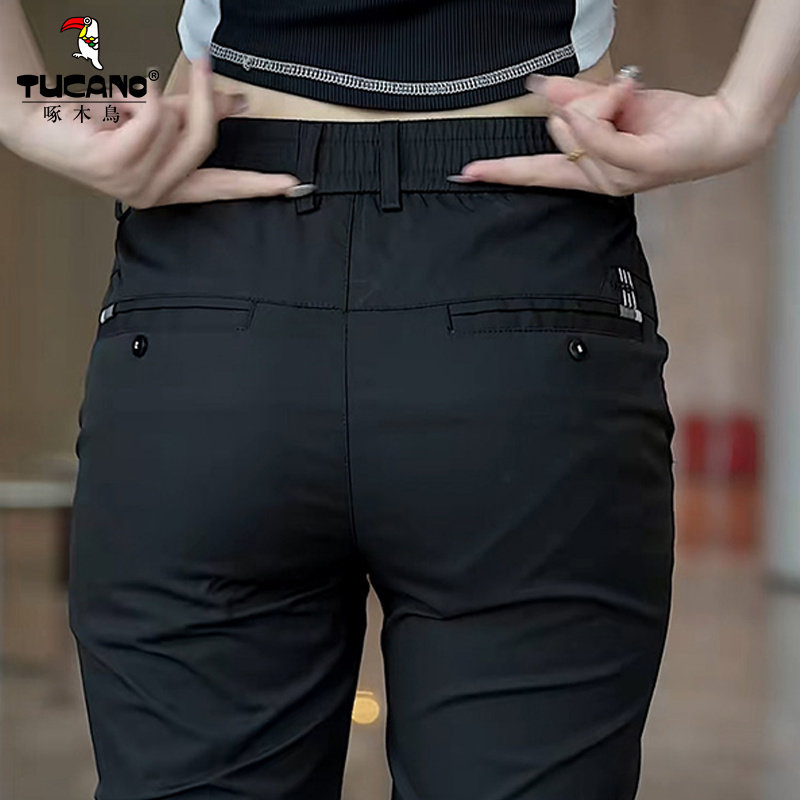 --------------------- TUCANO啄木鸟男士直筒休闲裤2026夏吸湿排汗季弹力修身黑色长裤 【原售价】64.9元 【现售价】57.1元 【推荐理由】