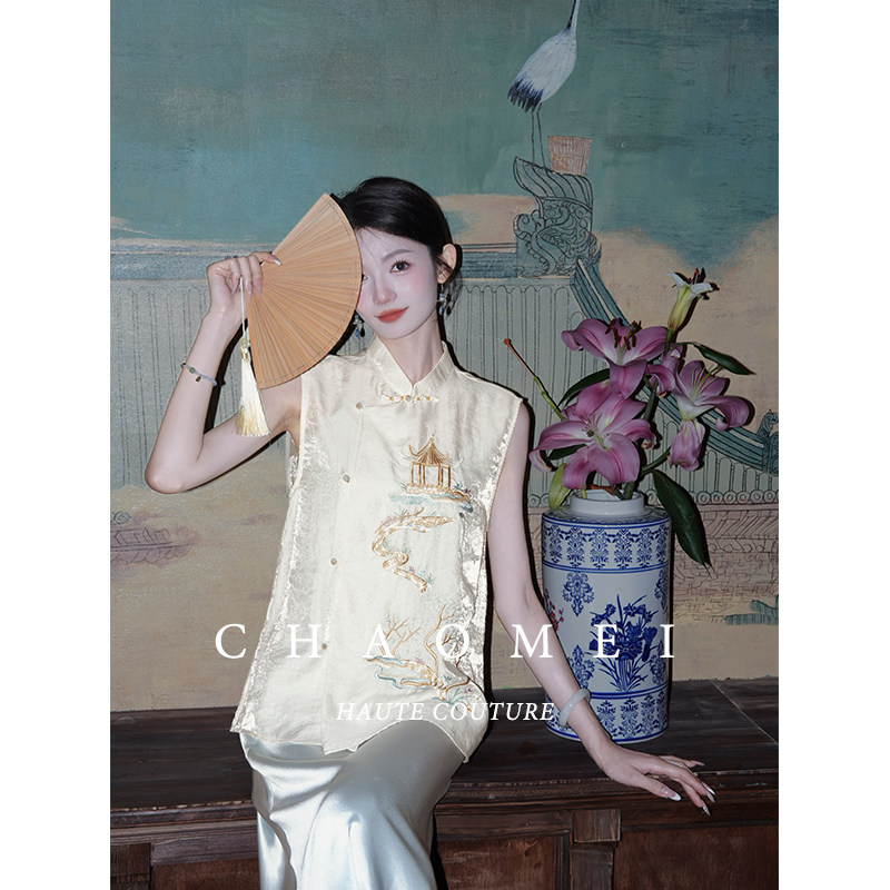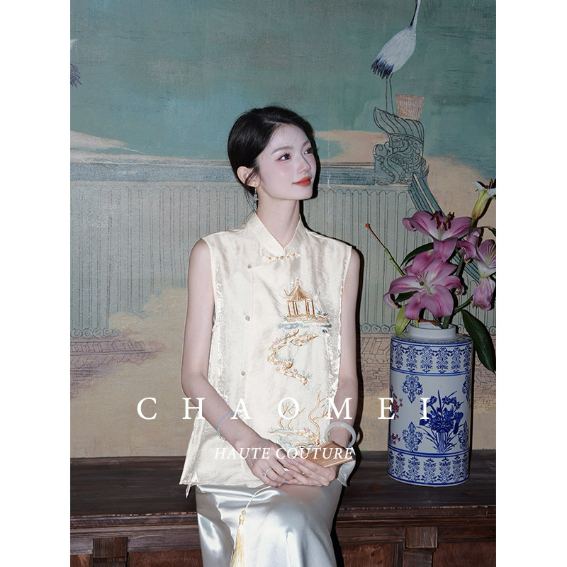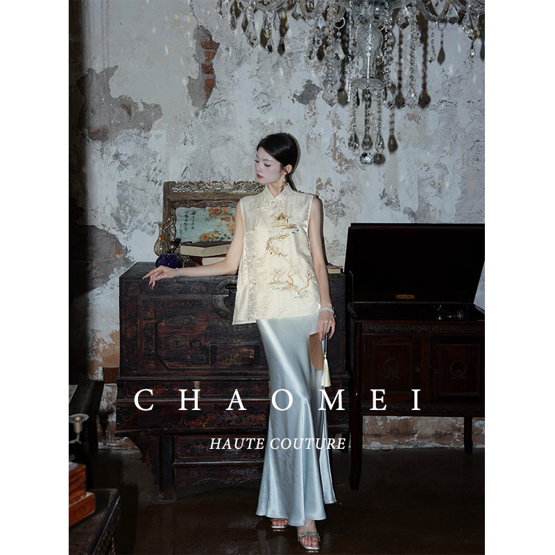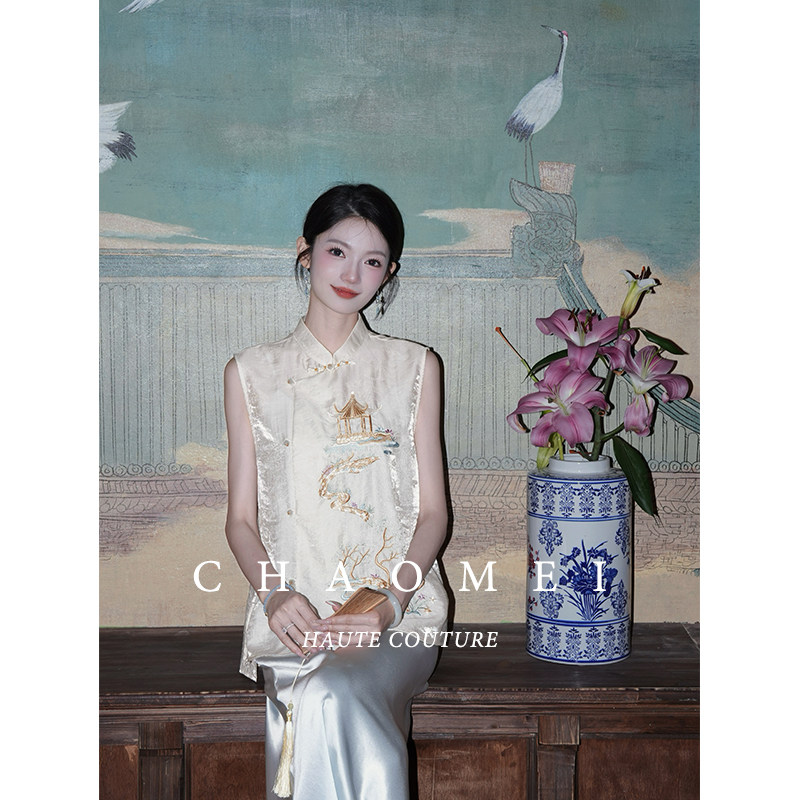 淘宝MOPASSANT【水云间】新中式天丝无袖绣花马甲+醋酸吊带裙套装