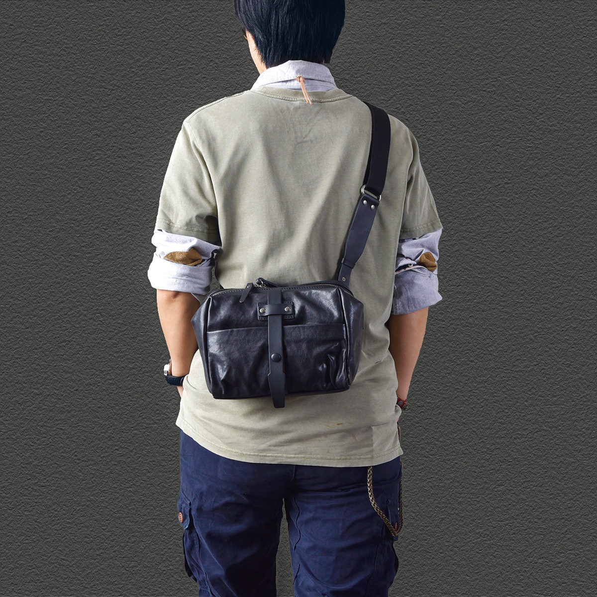 二十四街复古植鞣牛皮邮差包单肩斜挎包户外欧美小众质感相机包男