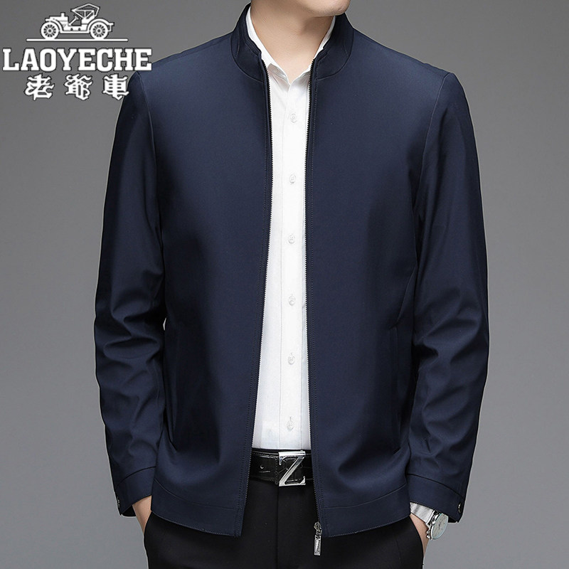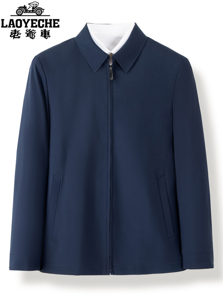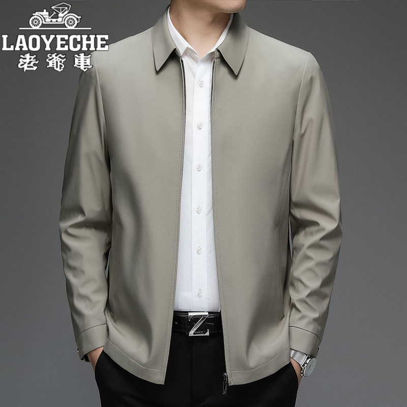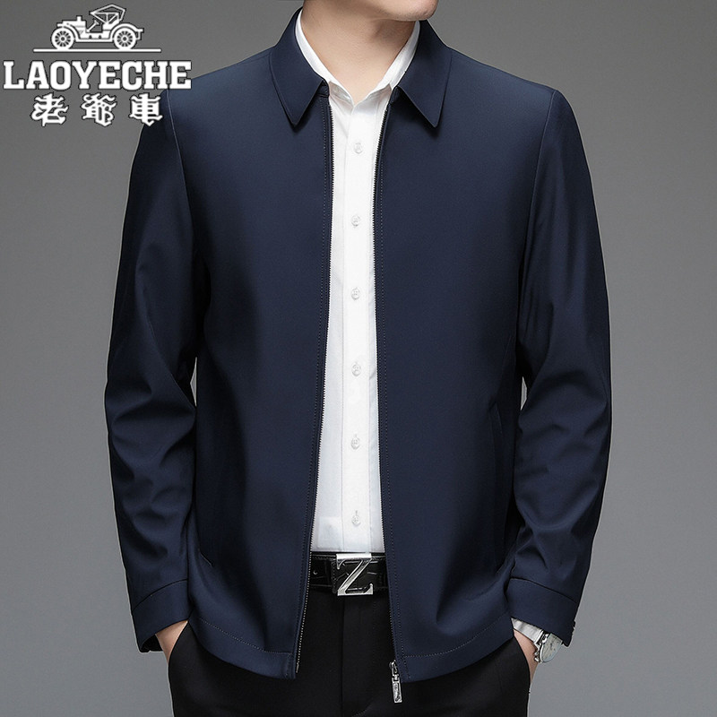老爷车男士行政夹克中老年爸爸装春季新款商务休闲翻领桑蚕丝外套