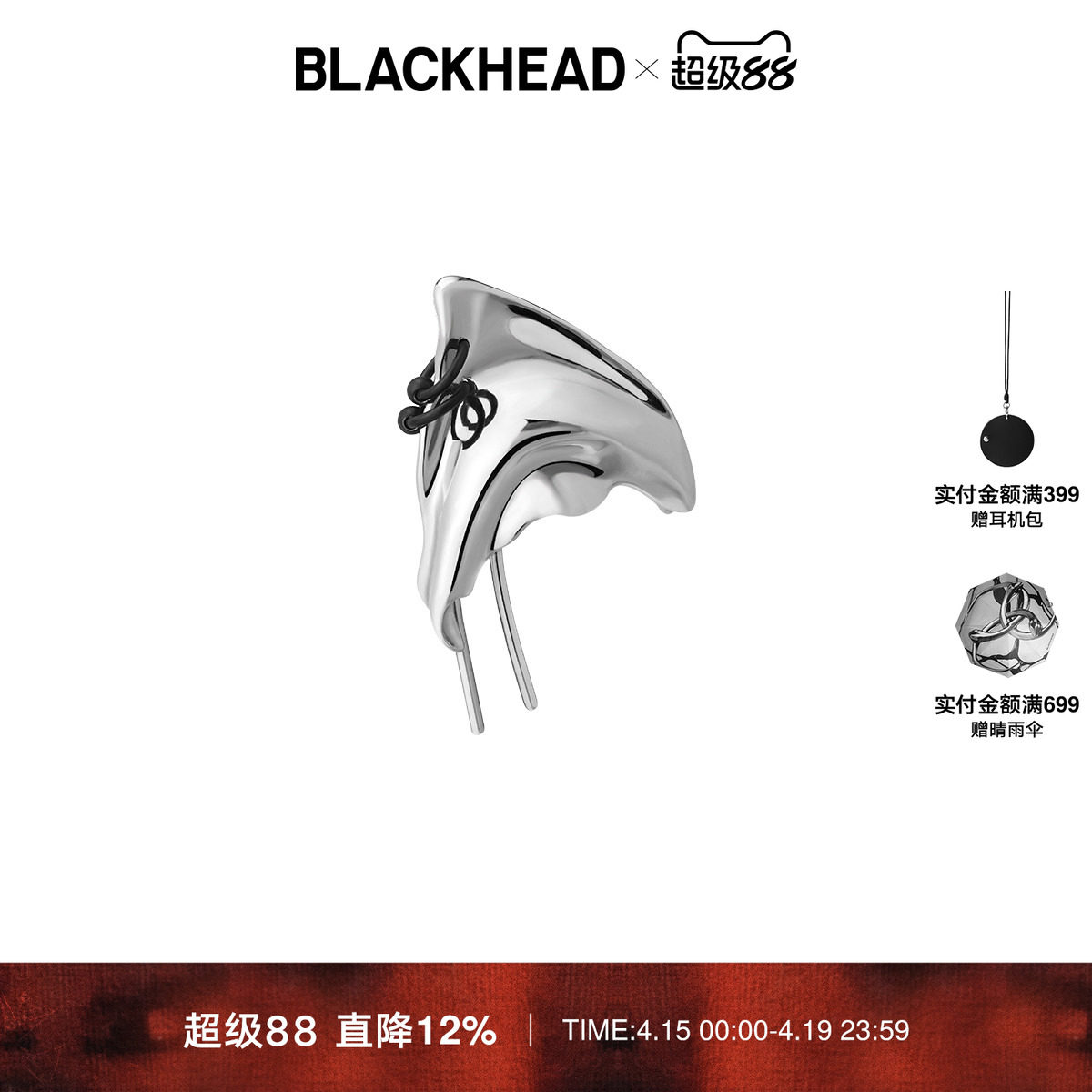 --------------------- 【黄子弘凡同款】BLACKHEAD/黑头小众设计个性女巫猫精灵耳挂朋克 【原售价】369元 【现售价】324元 【推荐理由】