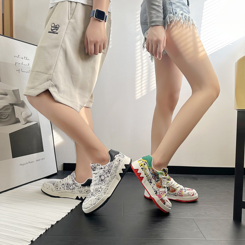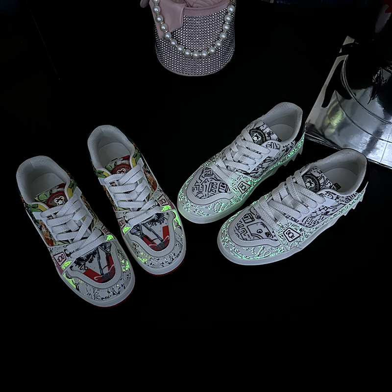 暴力熊男鞋情侣款休闲板鞋网面女鞋透气国潮黑白夜光荧光涂鸦潮鞋