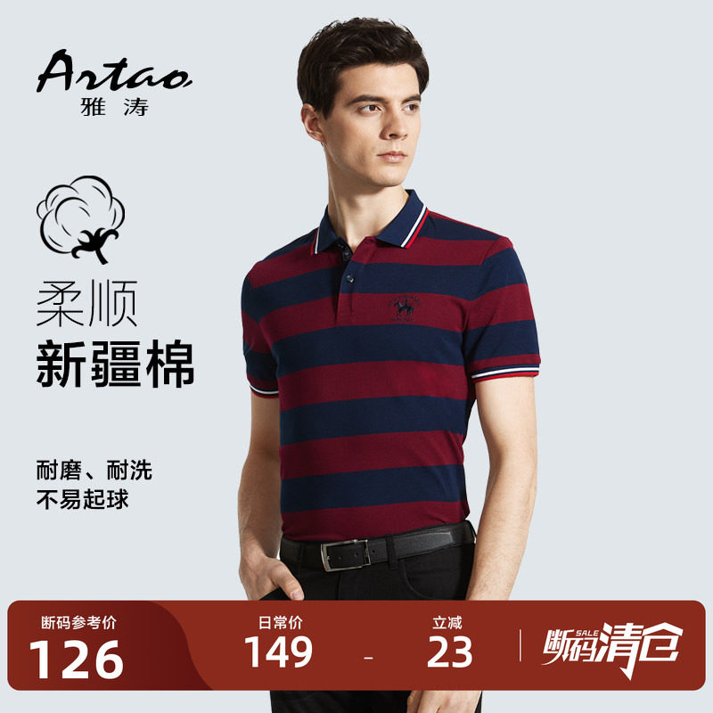 [断码清仓]雅涛男士短袖T恤纯棉夏季条纹翻领商务时尚POLO衫