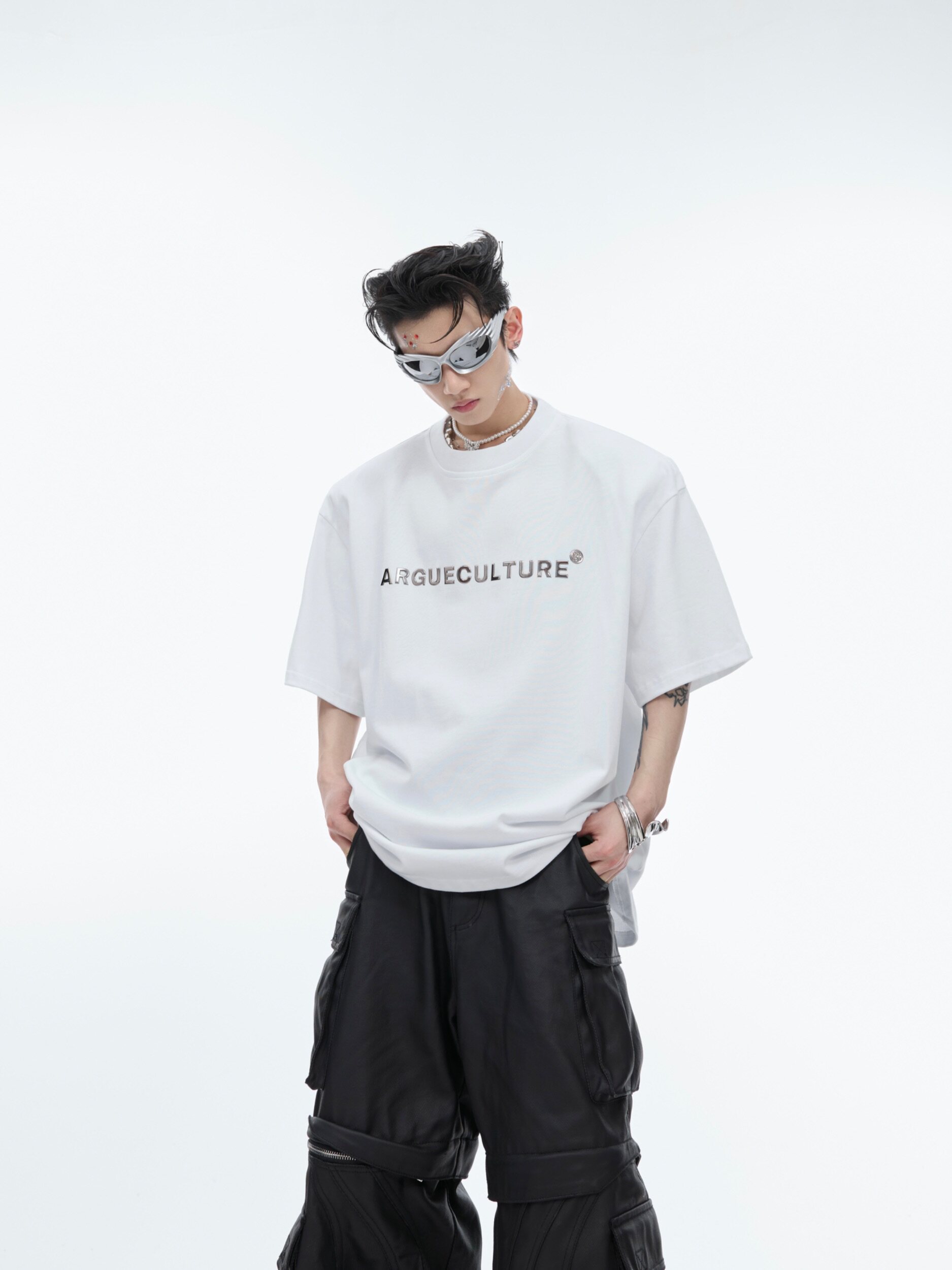 --------------------- CulturE简领银镀 立体金属logo设计垫肩纯棉短袖重磅水洗做旧T恤 【原售价】145元 【现售价】127元 【推荐理由】