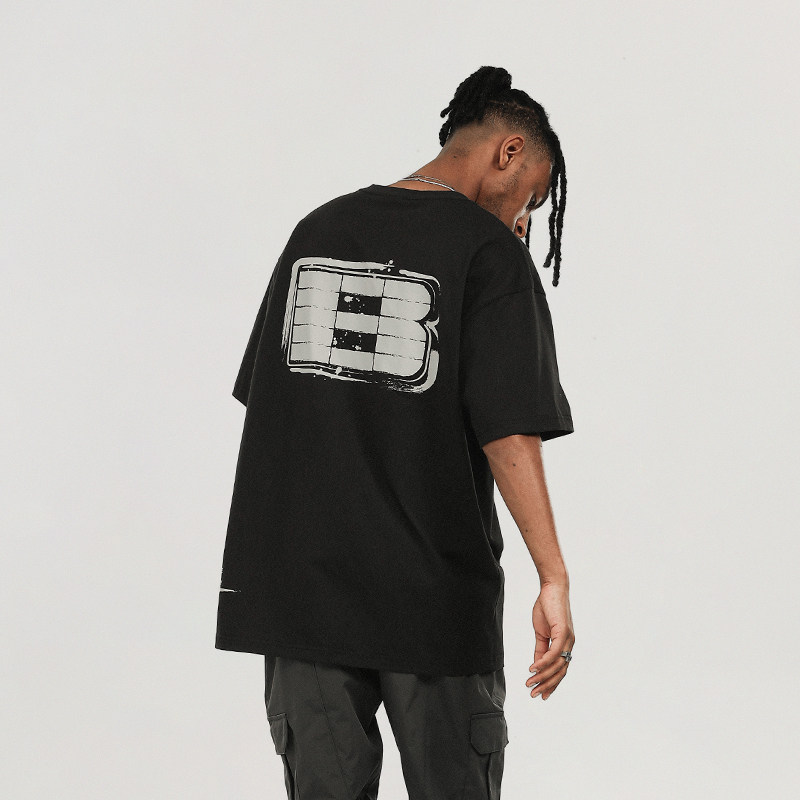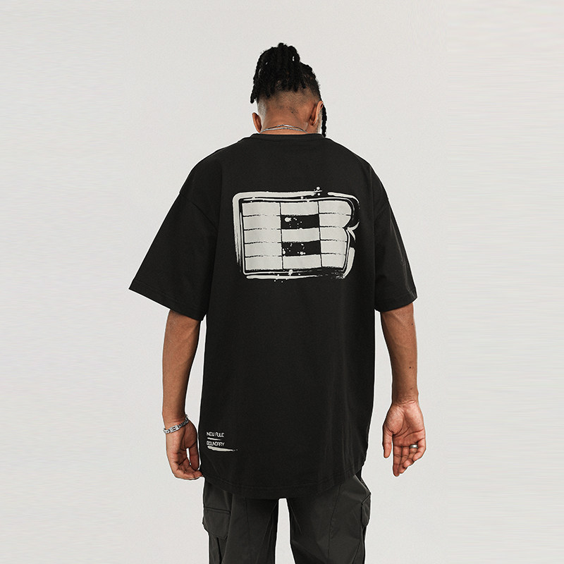 BONELESSlogo印花短袖T恤男美式休闲夏季复古宽松圆领上衣