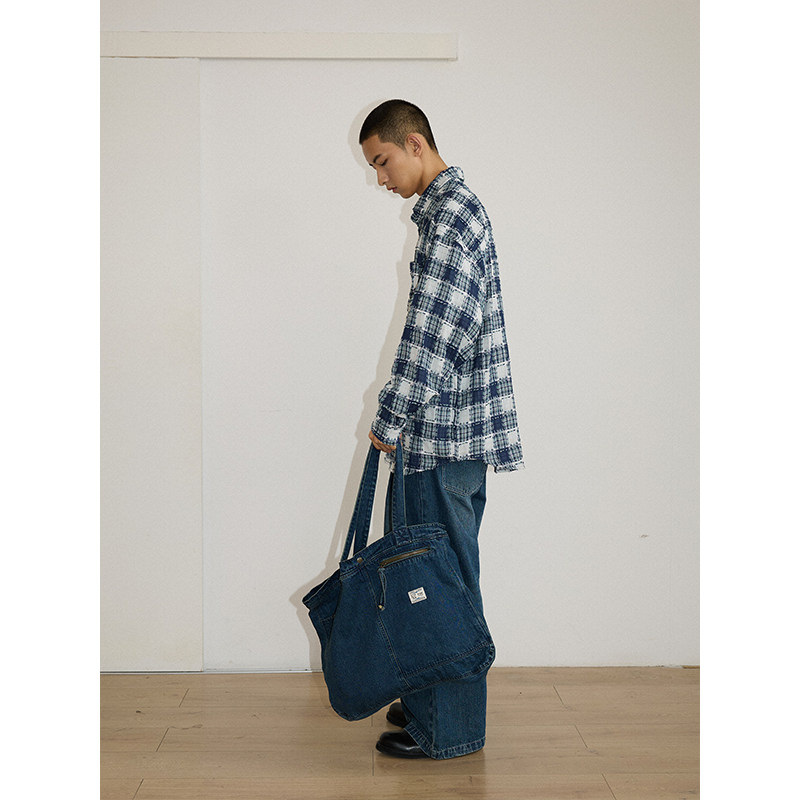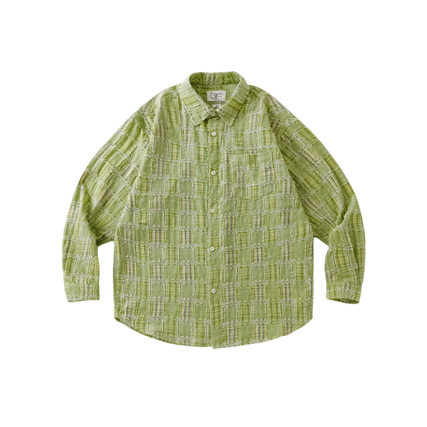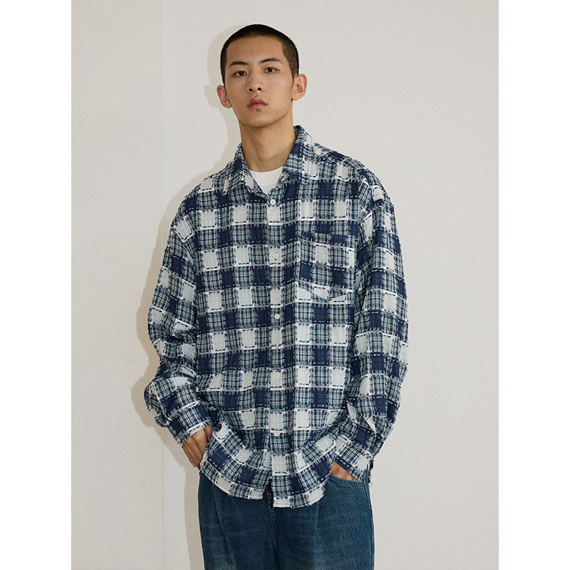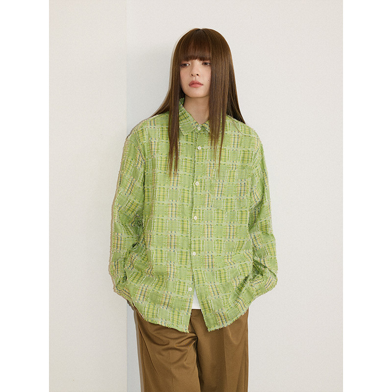 LR MADE 不规则破坏感流苏色织格子 廓形休闲慵懒感长袖衬衫