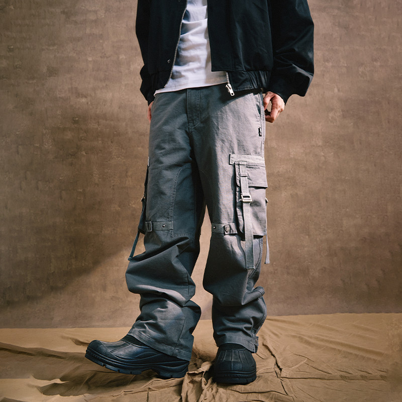 Remedy秋冬款飘带国潮宽松直筒多口袋休闲长裤美式复古工装裤子男
