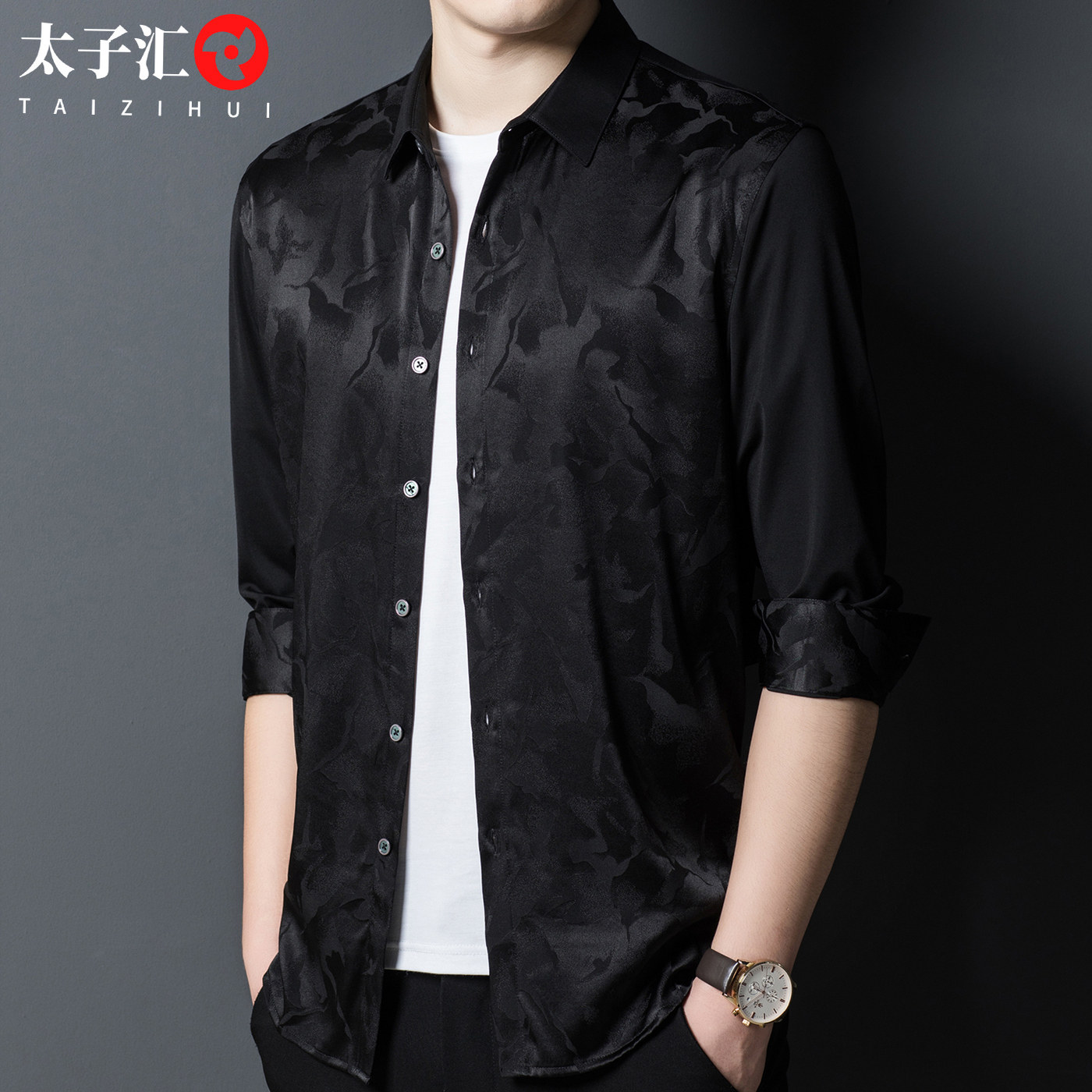 --------------------- 春秋季新款提花桑蚕丝长袖衬衫男士秋装上衣拼接真丝休闲免烫衬衣 【原售价】787元 【现售价】235元 【推荐理由】