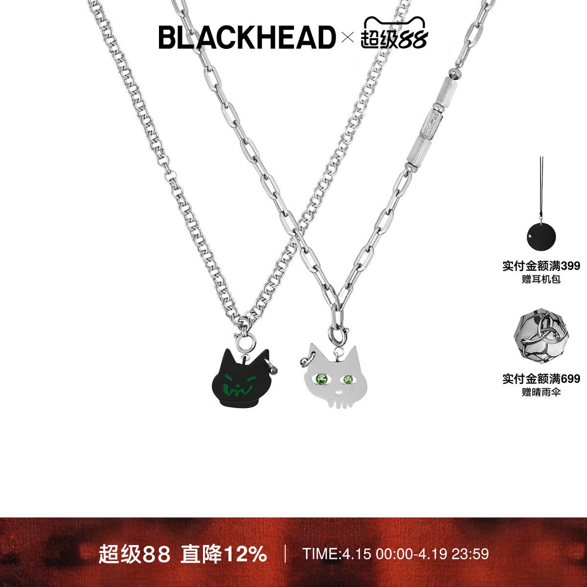 --------------------- BLACKHEAD/黑头情侣款项链夏季猫咪吊坠配饰锁骨链个性别致情人节 【原售价】299元 【现售价】263元 【推荐理由】