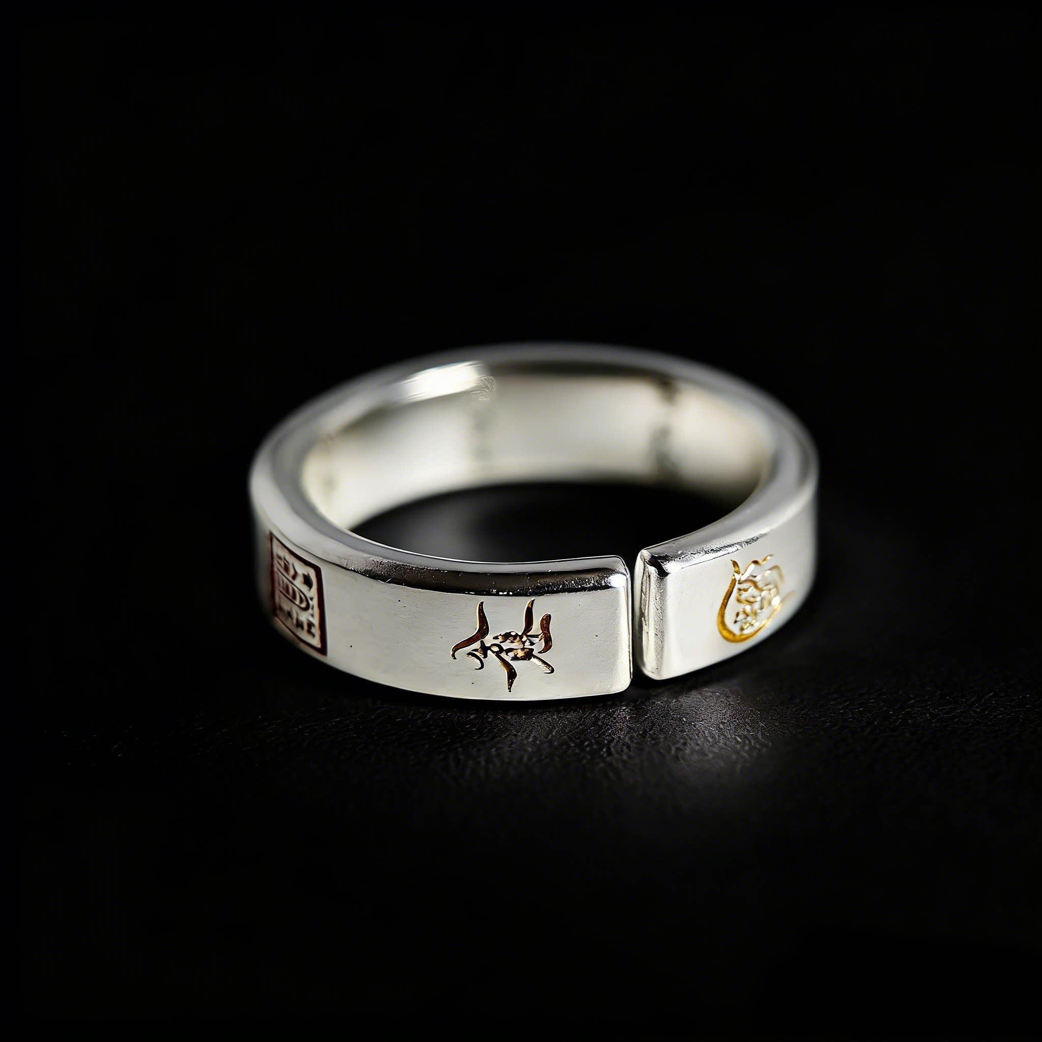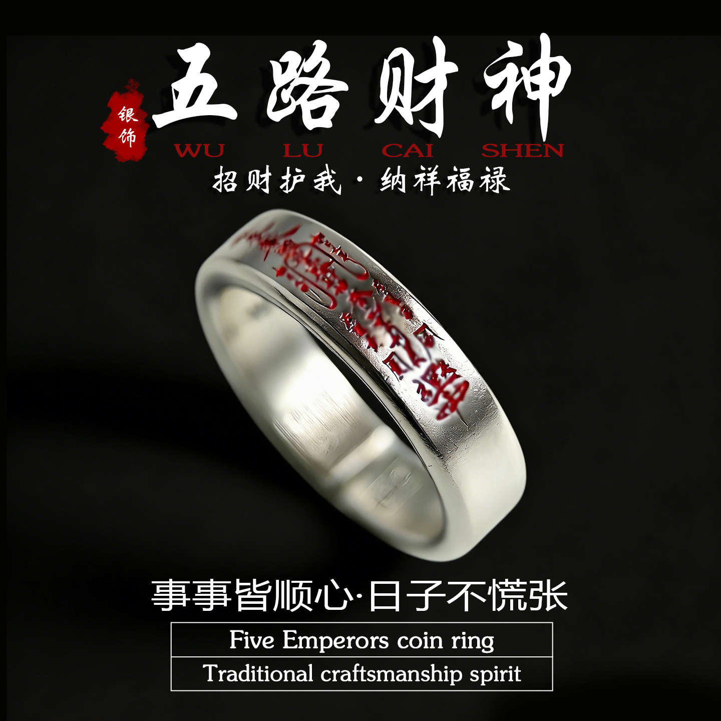 淘宝「道系」道家银饰五路财神戒指开口复古指环悟道系列招财守财本命