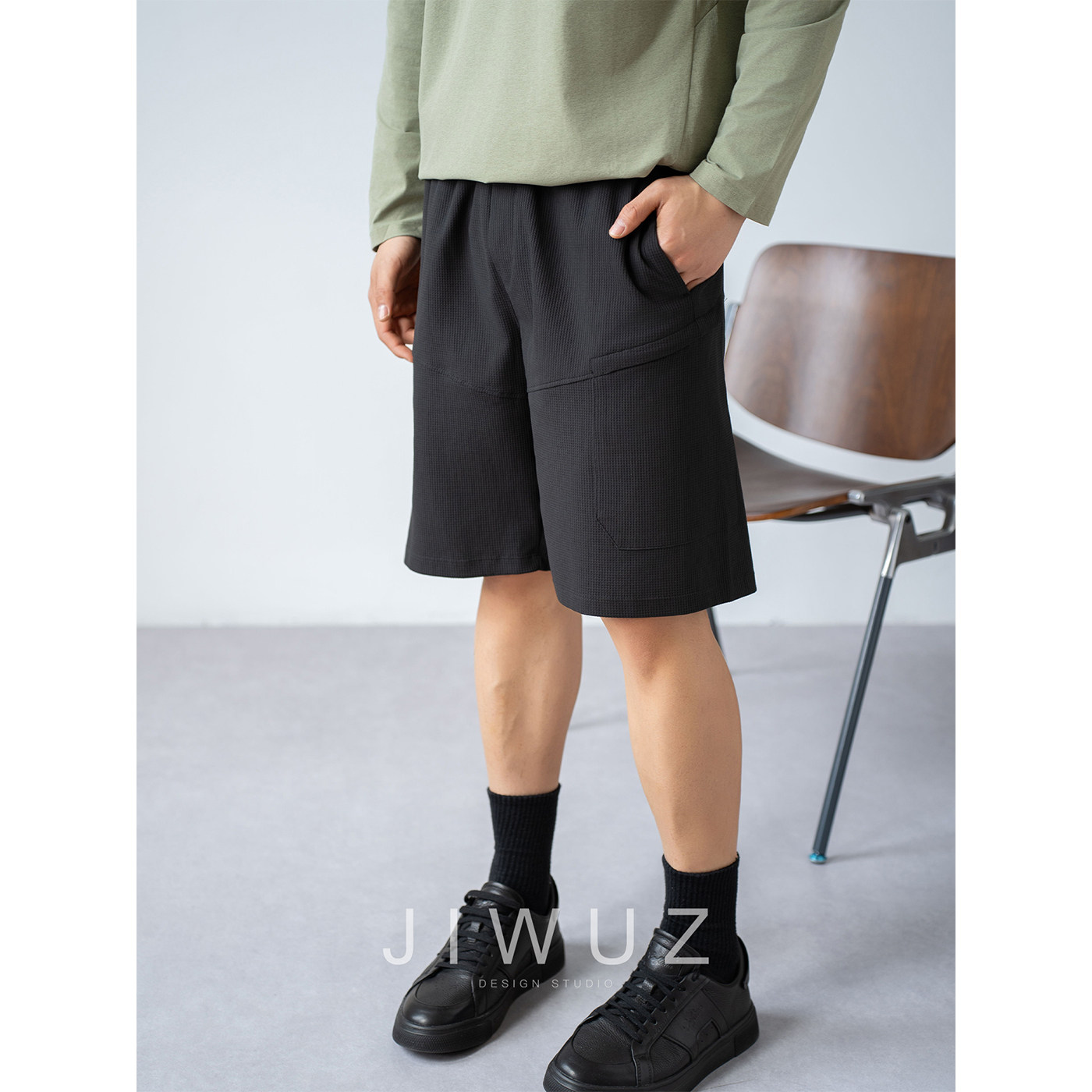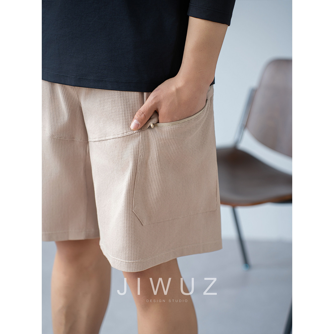 JIWUZ【7A抗菌】蓝岐华夫格吸湿透气高弹力纹理短裤户外运动休闲