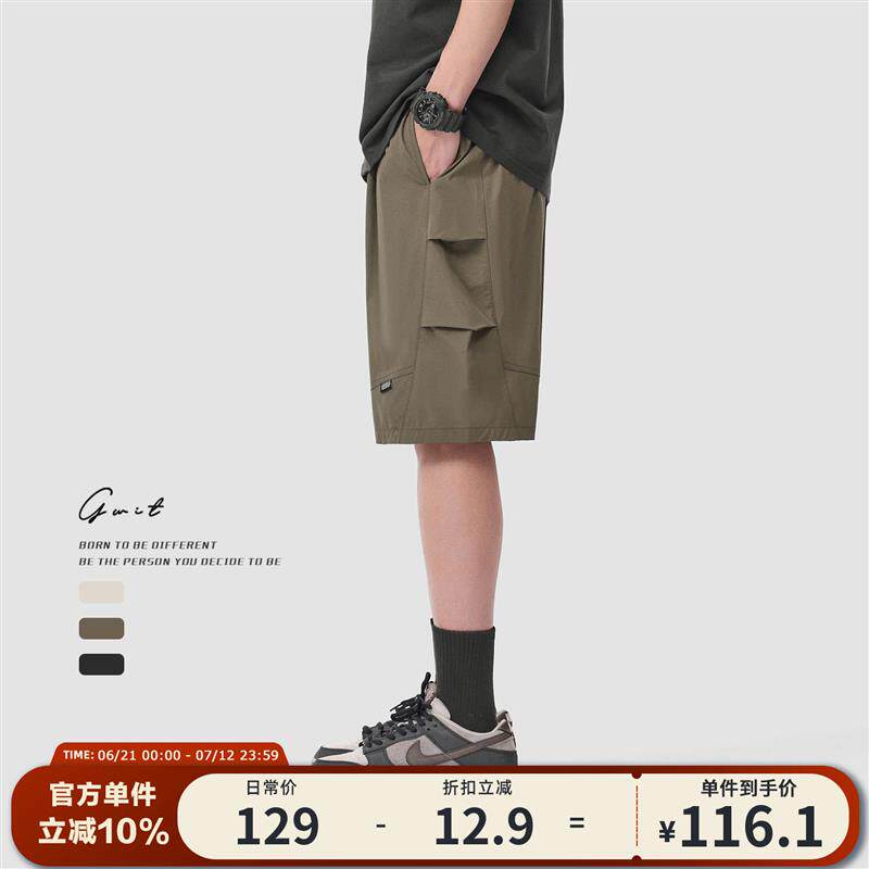 --------------------- GWIT 美式高街夏季轻薄冰丝透气凉感休闲中裤薄款五分工装短裤男 --------------------- --------------------- 【原价】85.9元 【券后价】75.9元
