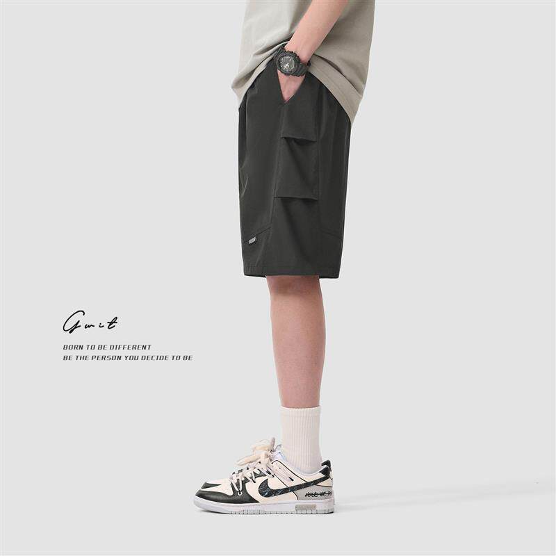 GWIT 美式高街夏季轻薄冰丝透气凉感休闲中裤薄款五分工装短裤男