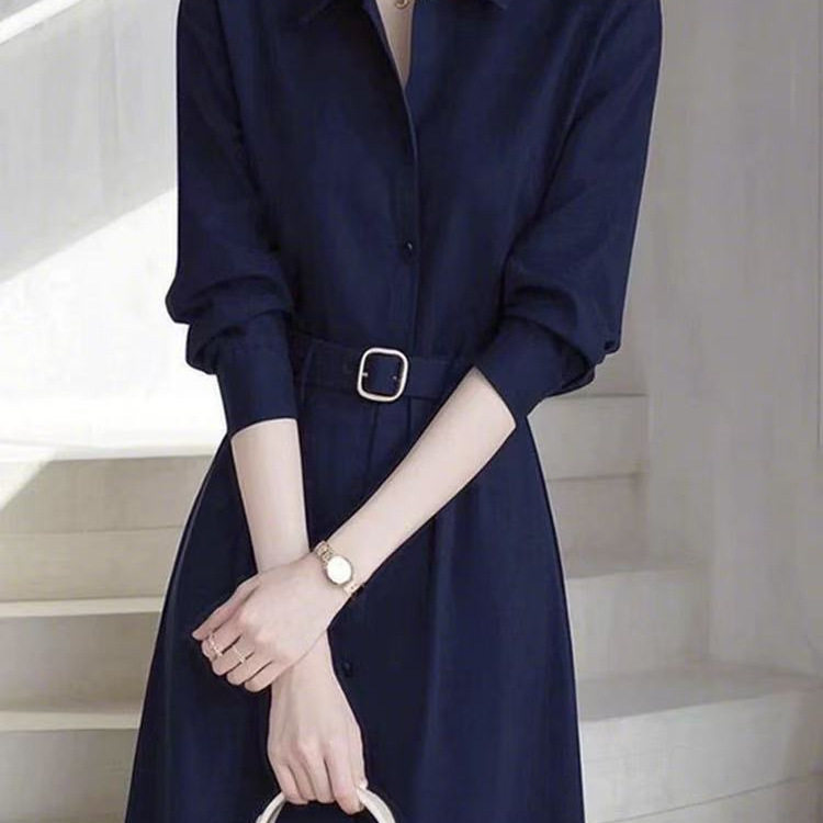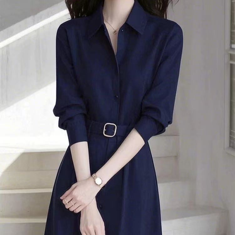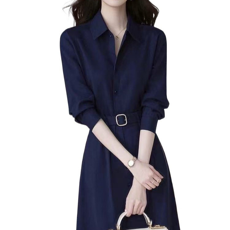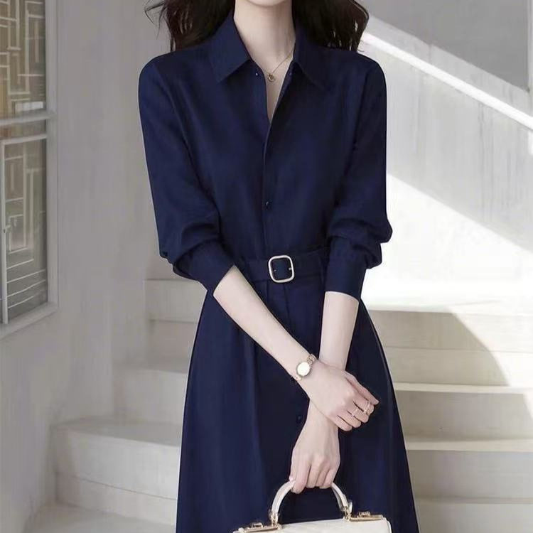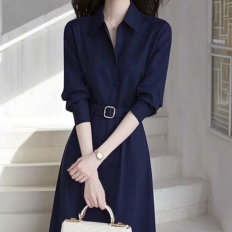春季法式气质名媛高端女神范轻奢感正式场合蓝色衬衫连衣裙子