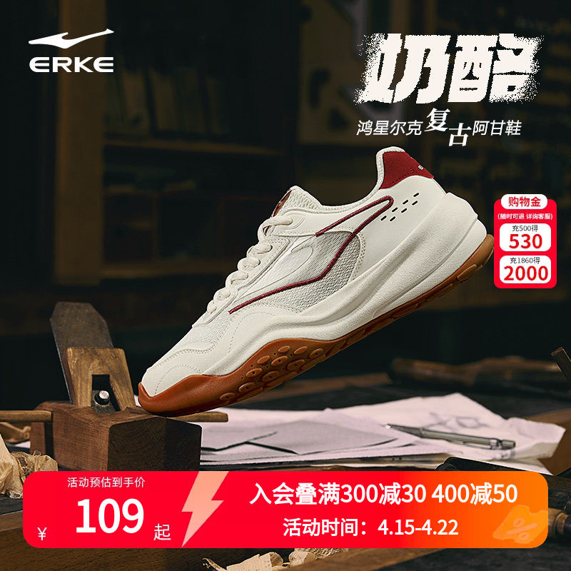 淘宝鸿星尔克奶酪运动鞋男春秋新款情侣复古休闲透气网面轻便阿甘鞋
