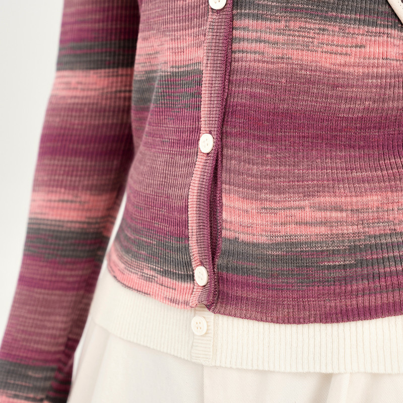 片断毛针织衫女春季新款假两件天丝晕染俏皮减龄撞色设计开衫