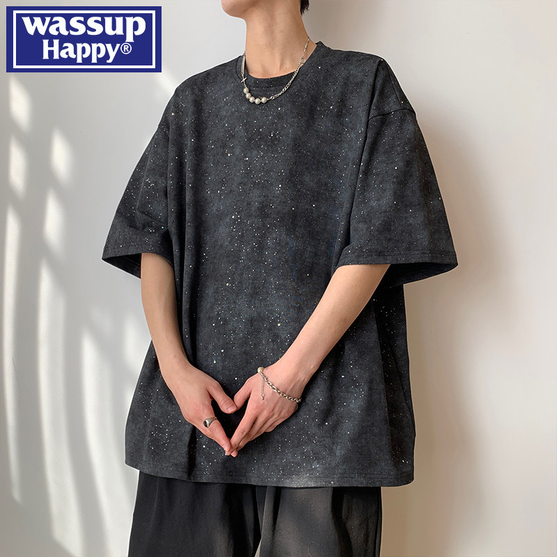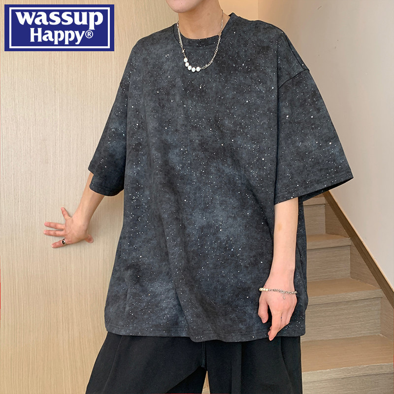 --------------------- wassup happy美式短袖t恤男夏季薄款扎染青少年宽松圆领半袖体恤 【原售价】499元 【现售价】157元 【推荐理由】