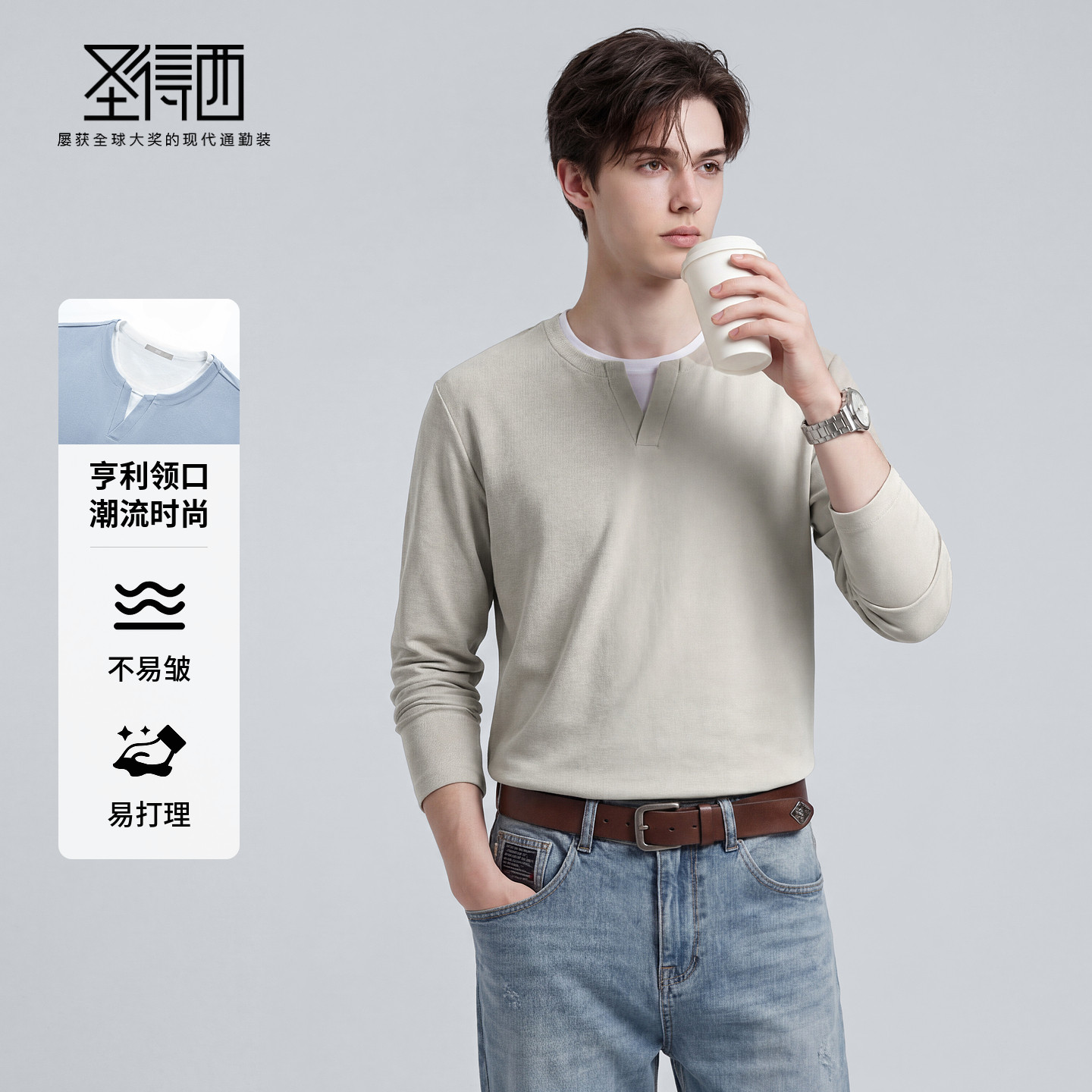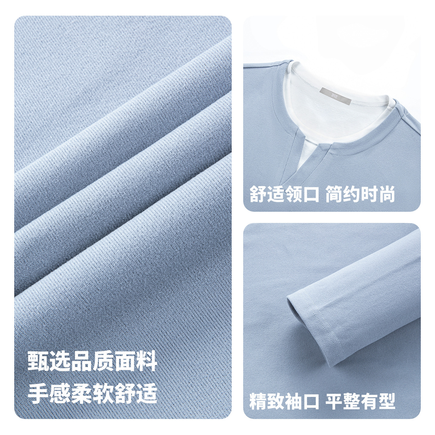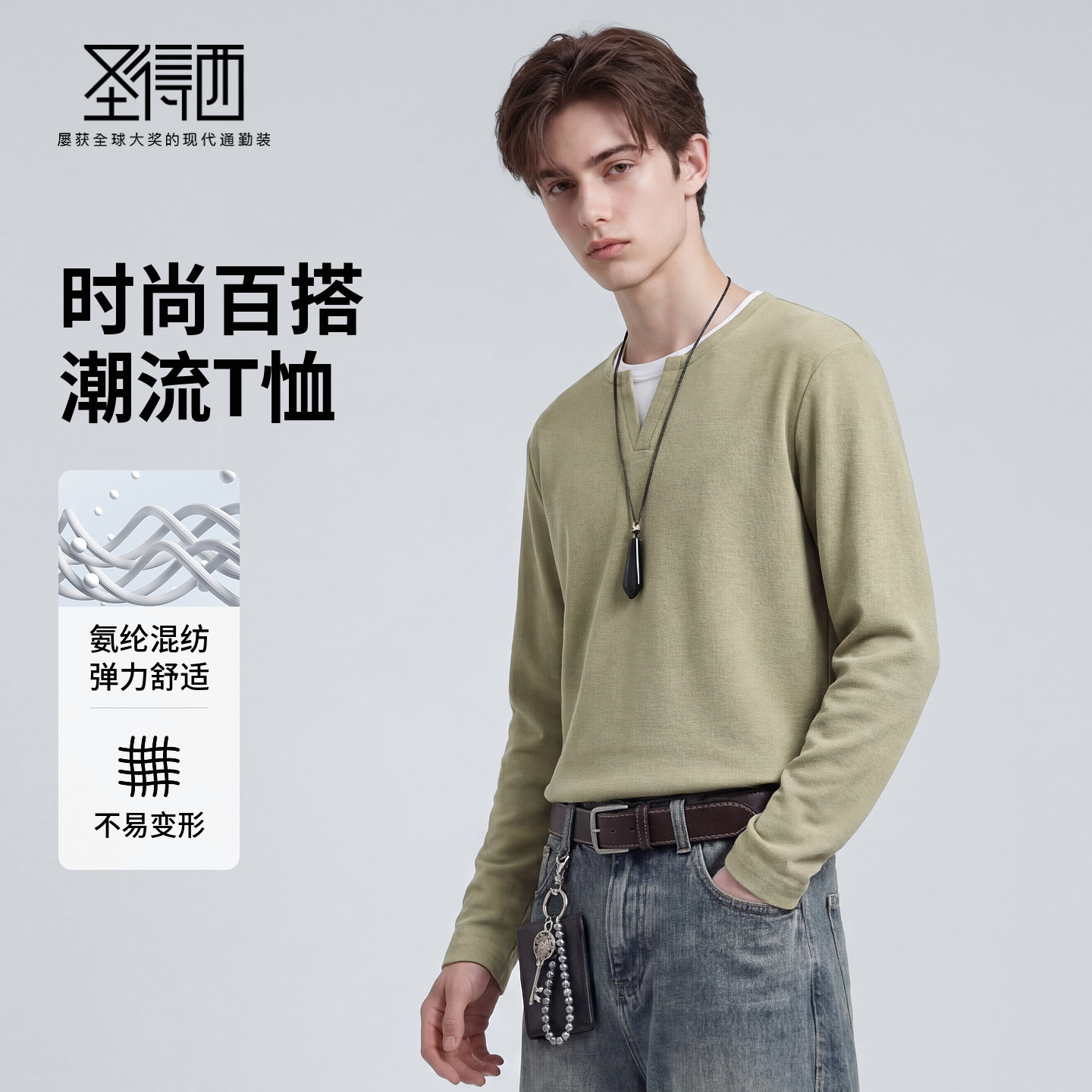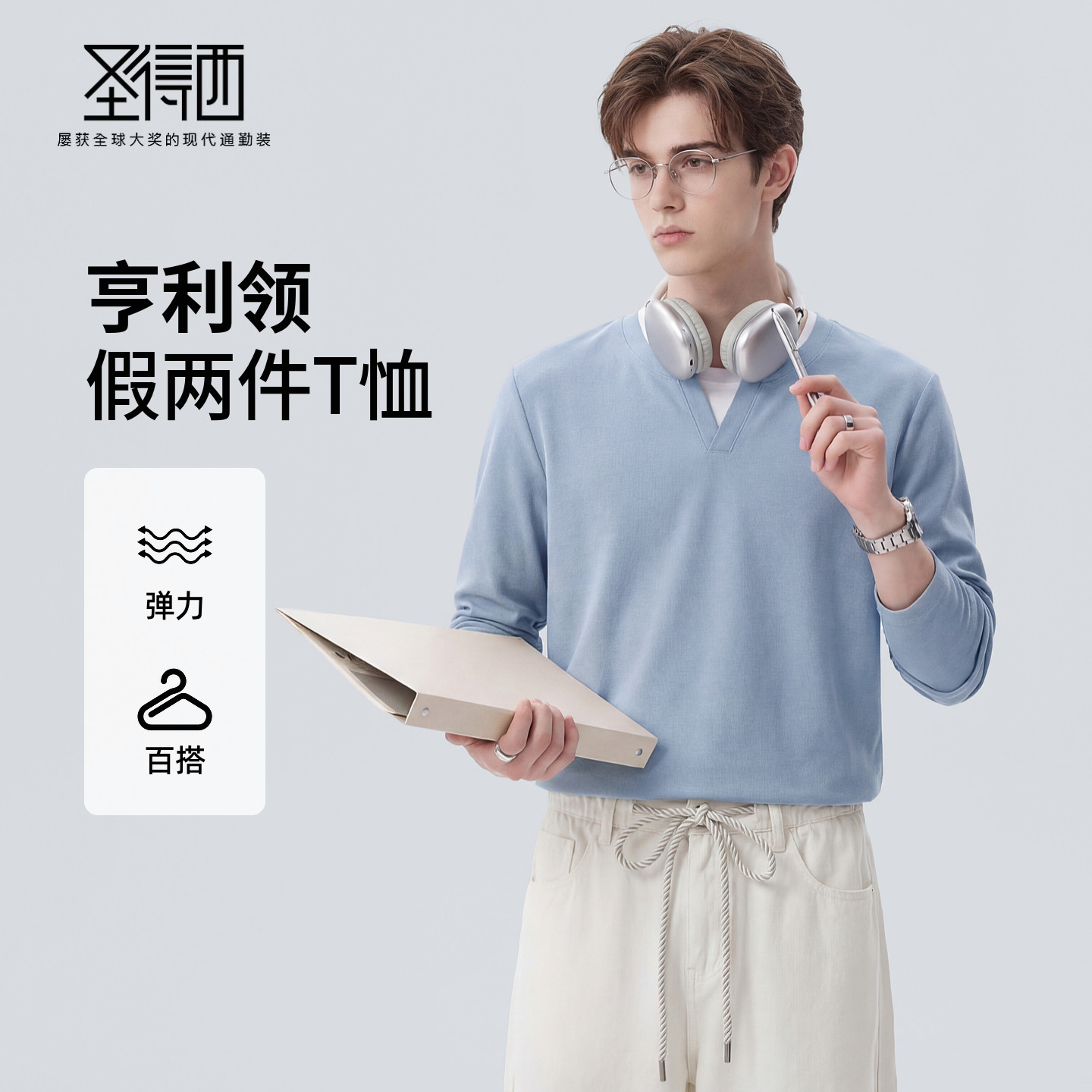 【微弹亲肤】圣得西男亨利领假两件T恤26春夏款时尚百搭潮流卫衣
