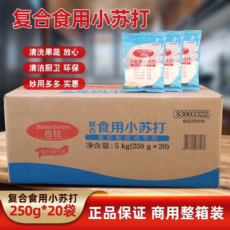 百钻复合食用小苏打250g袋装和食用碱苏打粉家用面烘焙原料整箱装