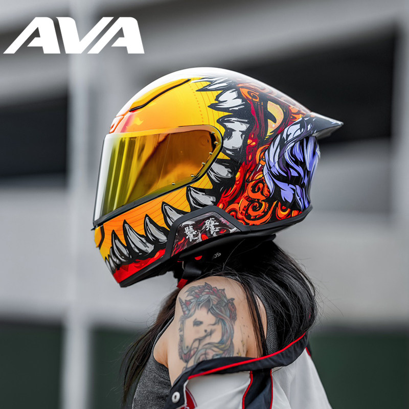 AVA头盔红箭摩托车全盔男女机车仿赛国潮头盔蓝牙耳机3C认证四季
