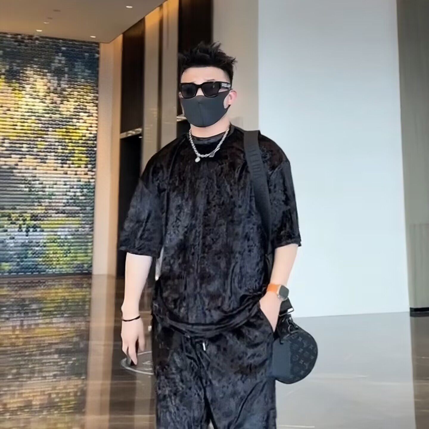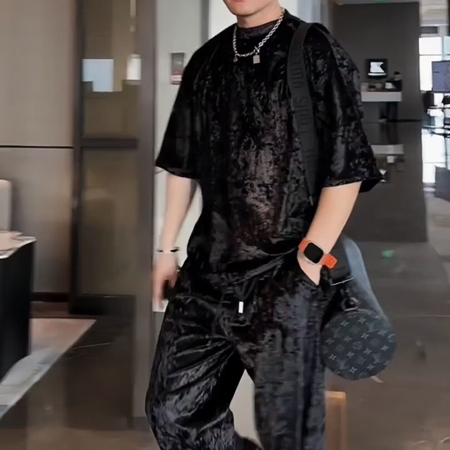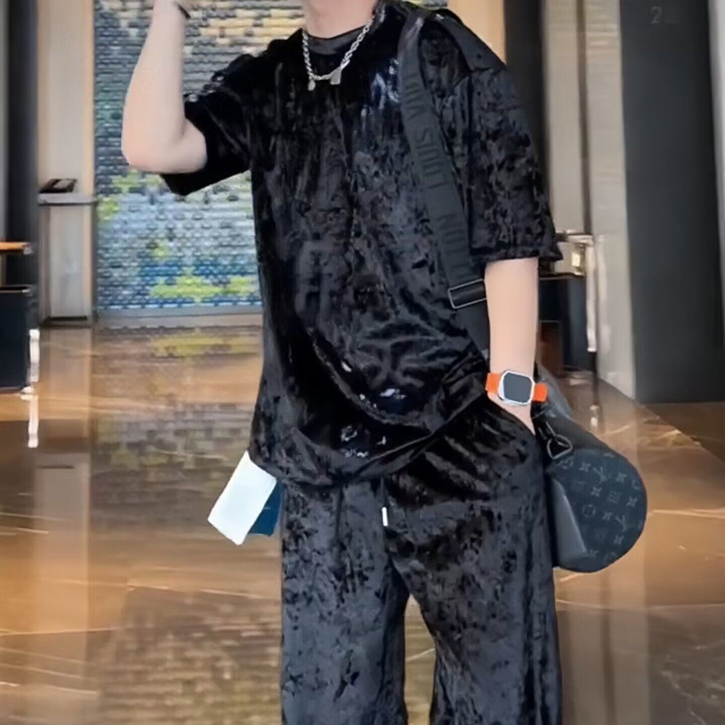 高级感免烫T恤套装男短袖 夏季新款时尚潮流宽松弹力潮t+休闲裤男