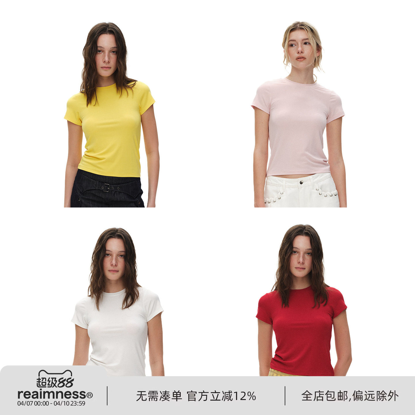 ReAimNess*「果缤纷」进口兰精莫代尔基础款圆领正肩修身短袖T恤