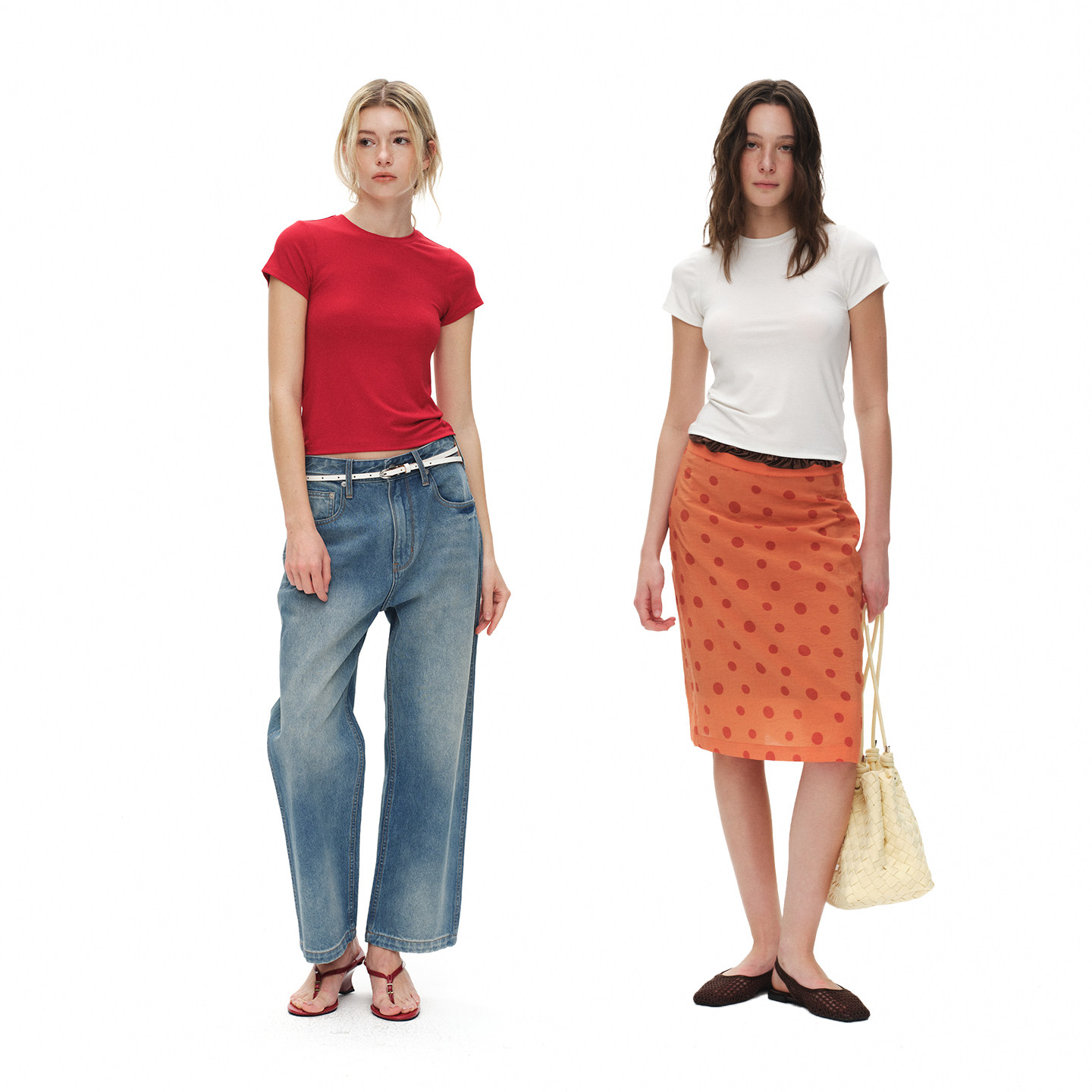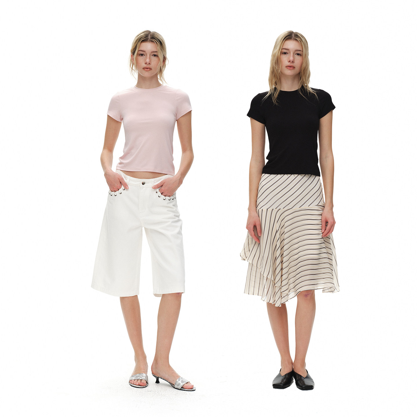 --------------------- ReAimNess*「果缤纷」进口兰精莫代尔基础款圆领正肩修身短袖T恤 【原售价】159元 【现售价】139元 【推荐理由】