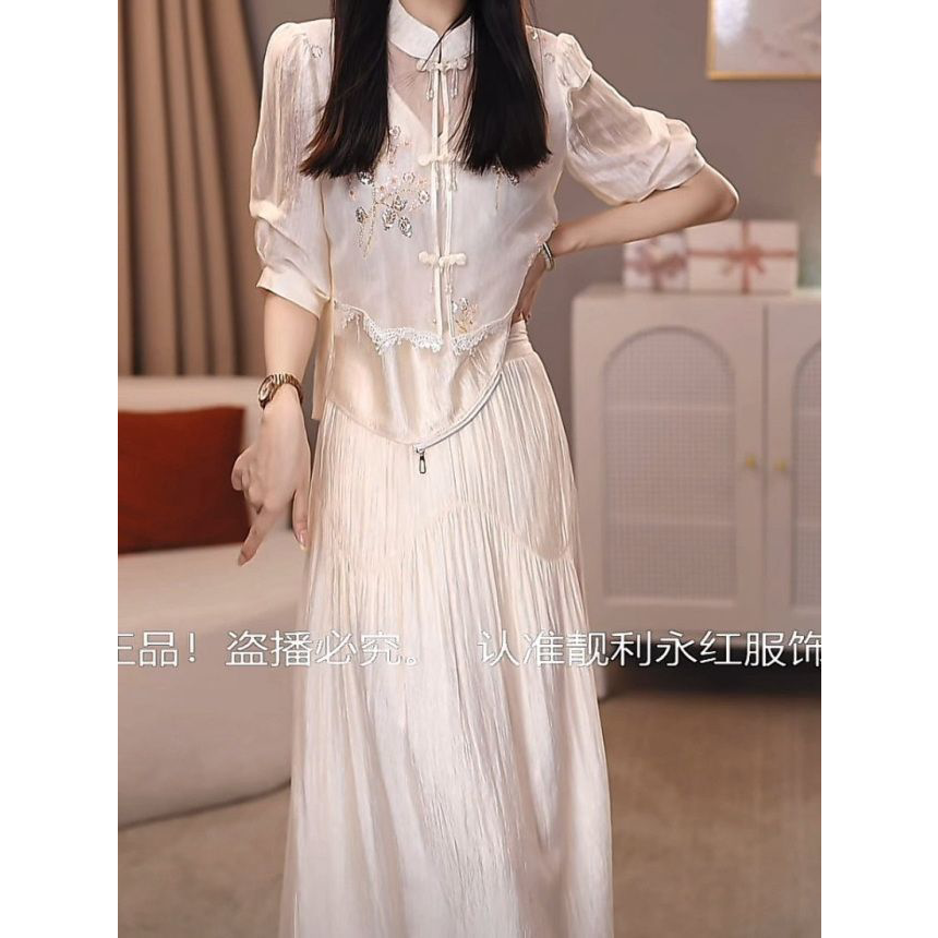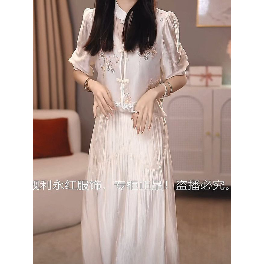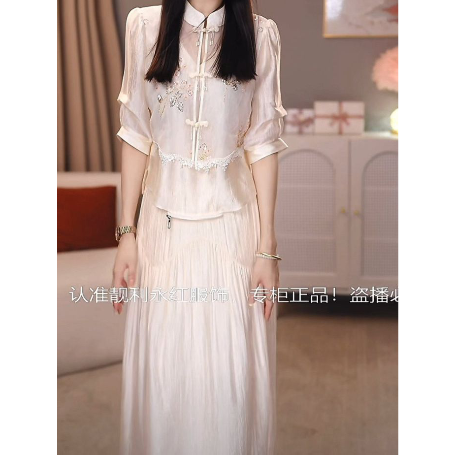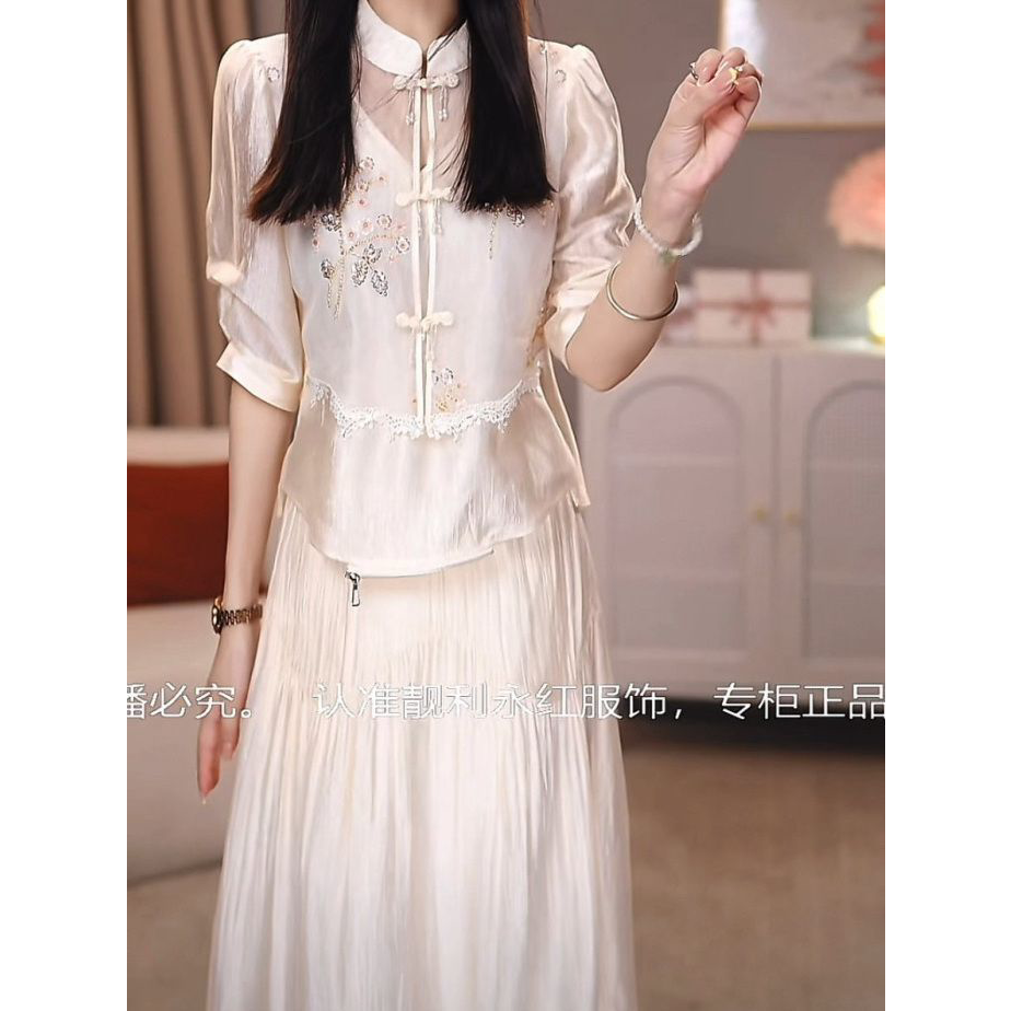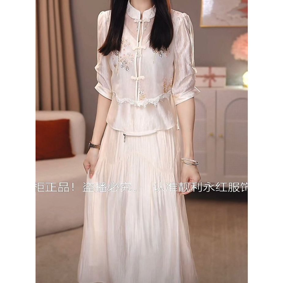 2026春夏新款女时尚气质遮肉显瘦套装新中式天丝两件套上衣半身裙