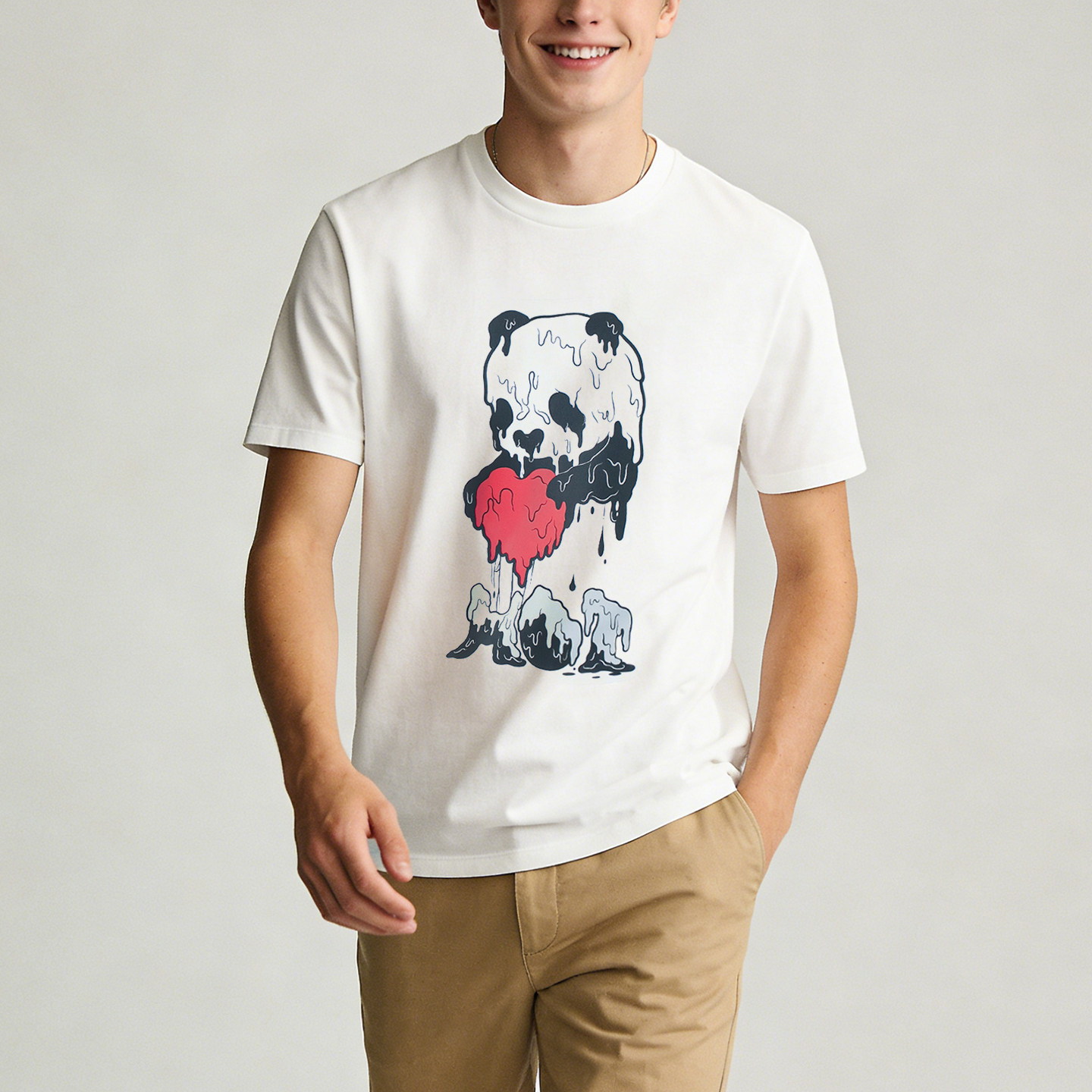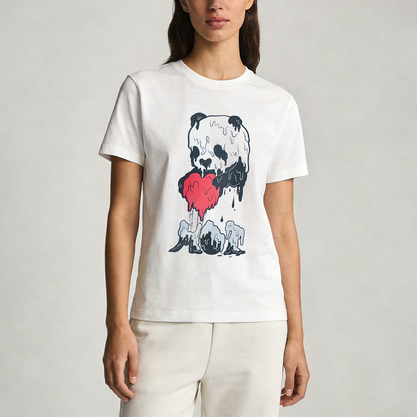 路上海原创全棉熊猫344正肩休闲纯棉短袖国潮女男情侣t恤设计感