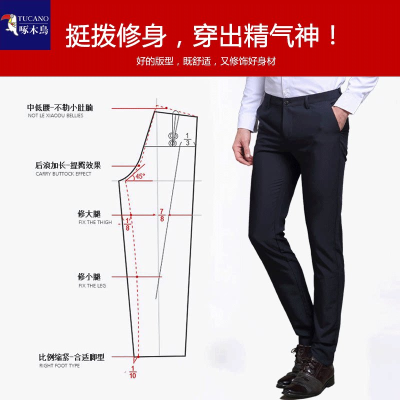 --------------------- 啄木鸟男士休闲裤春秋新款商务灰色西裤直筒修身免烫抗皱裤子男 【原售价】258元 【现售价】121元 【推荐理由】