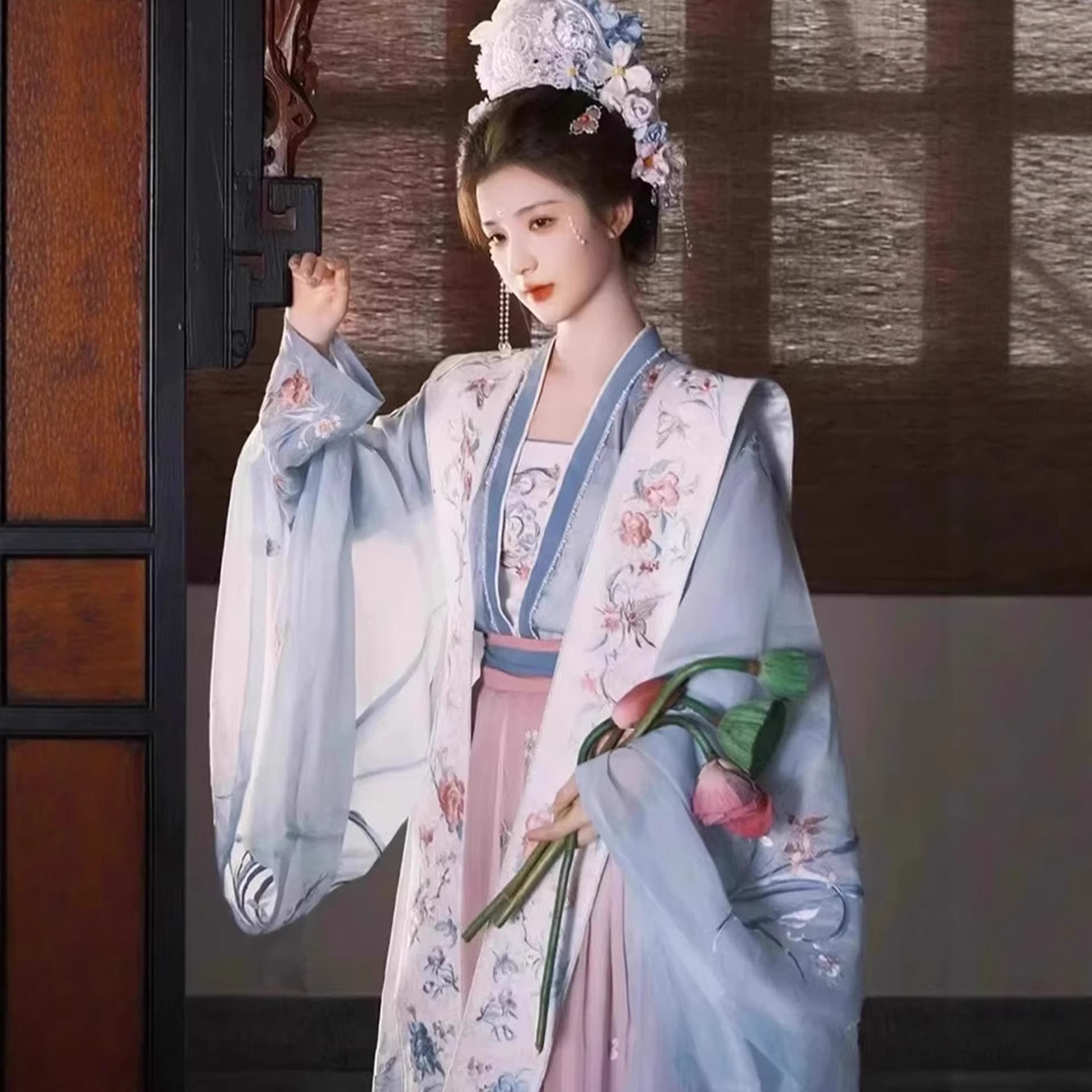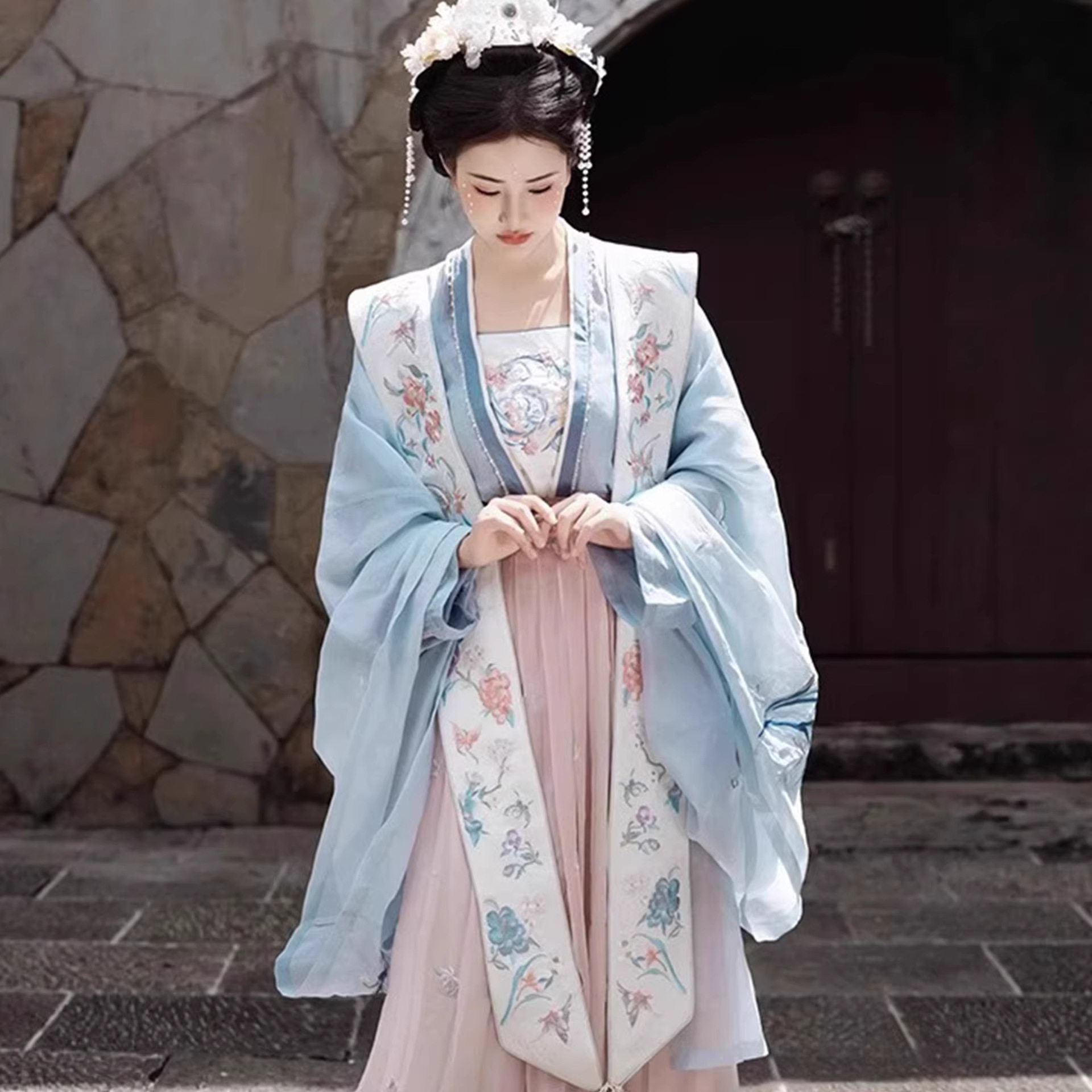 原创宋制汉服女鼓古装绝美大袖衫霞帔齐腰襦裙仙气飘飘古风套装春