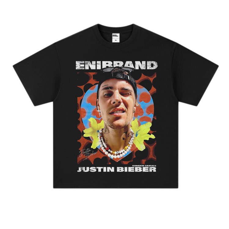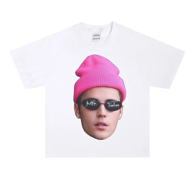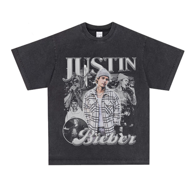 贾斯汀比伯Justin Bieber同款演唱会人像欧美复古做旧T恤印花短袖