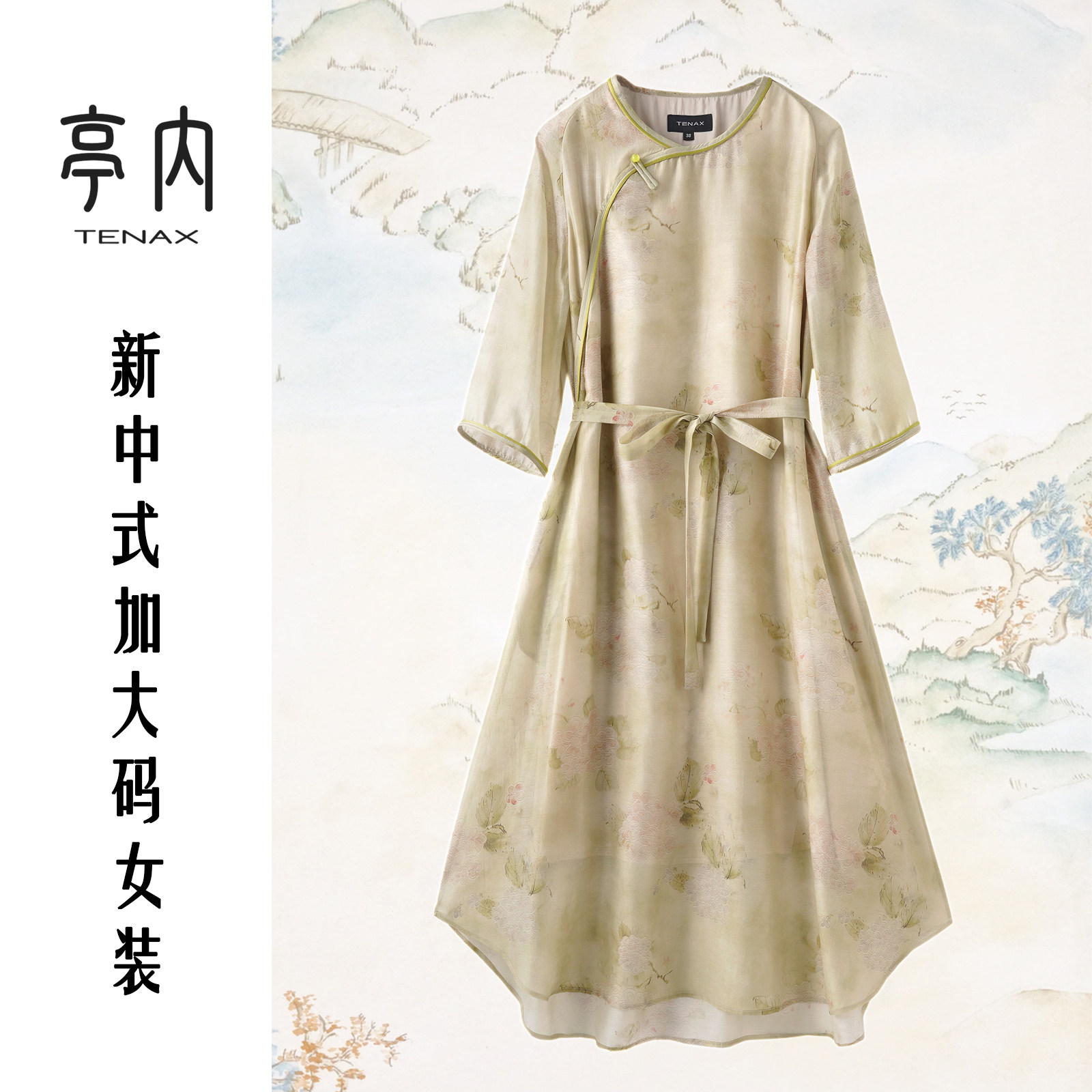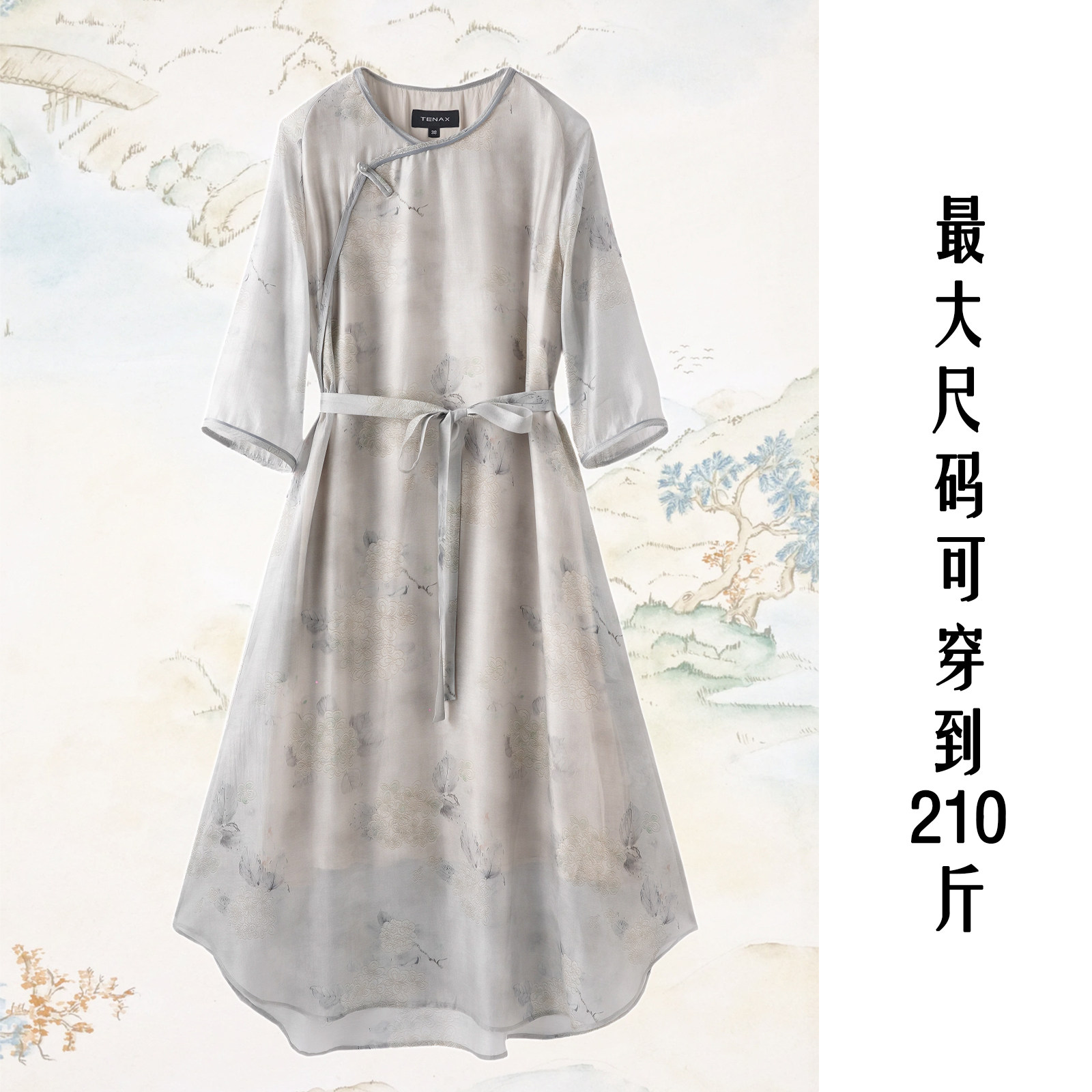 --------------------- TENAX中年妈妈宽松大码春夏新款新中式国风汉麻桑蚕丝连衣裙 【原售价】198元 【现售价】174元 【推荐理由】