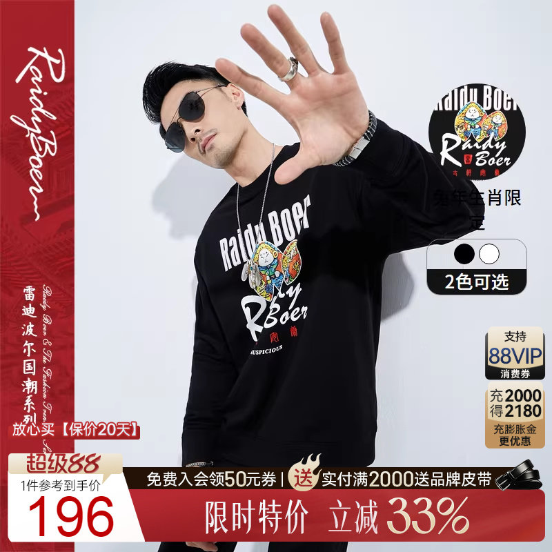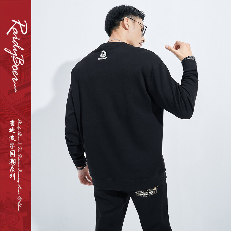 淘宝Raidy Boer/雷迪波尔男装国潮秋冬胶印兔儿爷图案棉休闲卫衣6670