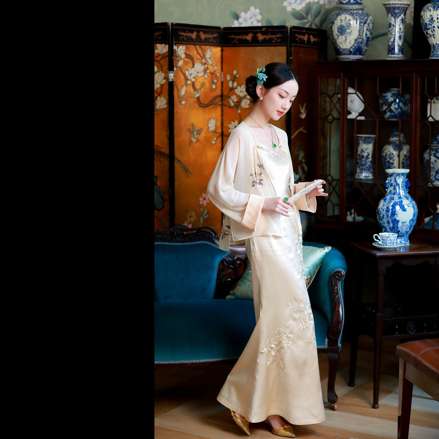 --------------------- 棠晚晴溪丨一城风絮丨夏款米色薄纱国潮风新中式绣花对襟花扣上衣 【原售价】899元 【现售价】791元 【推荐理由】