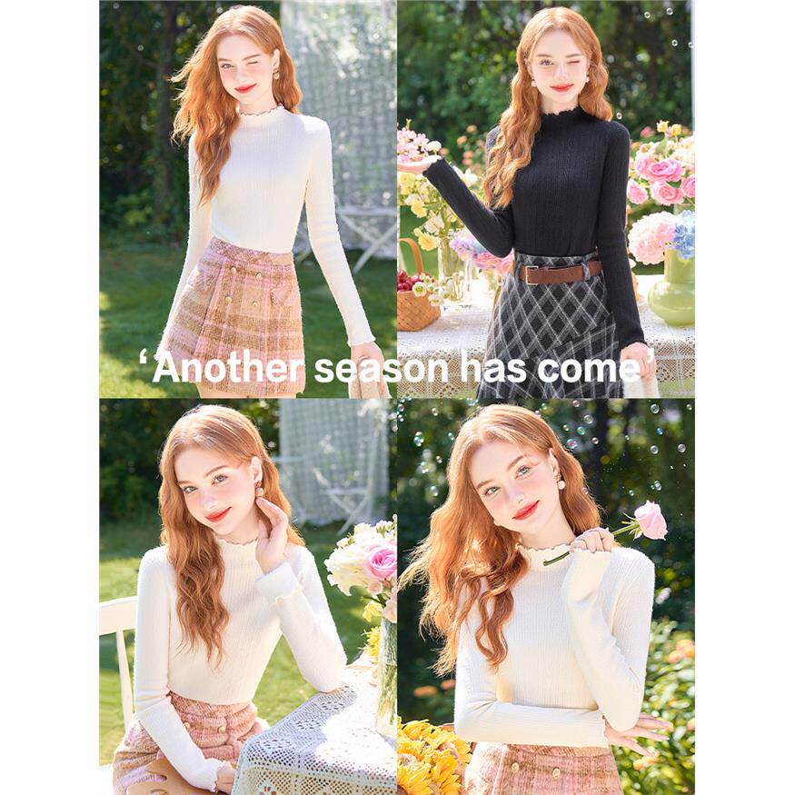 --------------------- 歌依妮2025秋冬新款白色加绒加厚木耳边内搭打底衫毛衣针织衫上衣 【原售价】101.23元 【现售价】101.23元 【推荐理由】