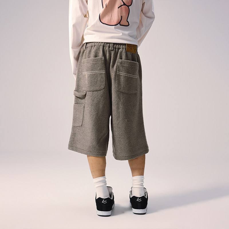 Remedy2024新款国潮宽松直筒休闲短裤美式潮牌毛呢七分裤子男女