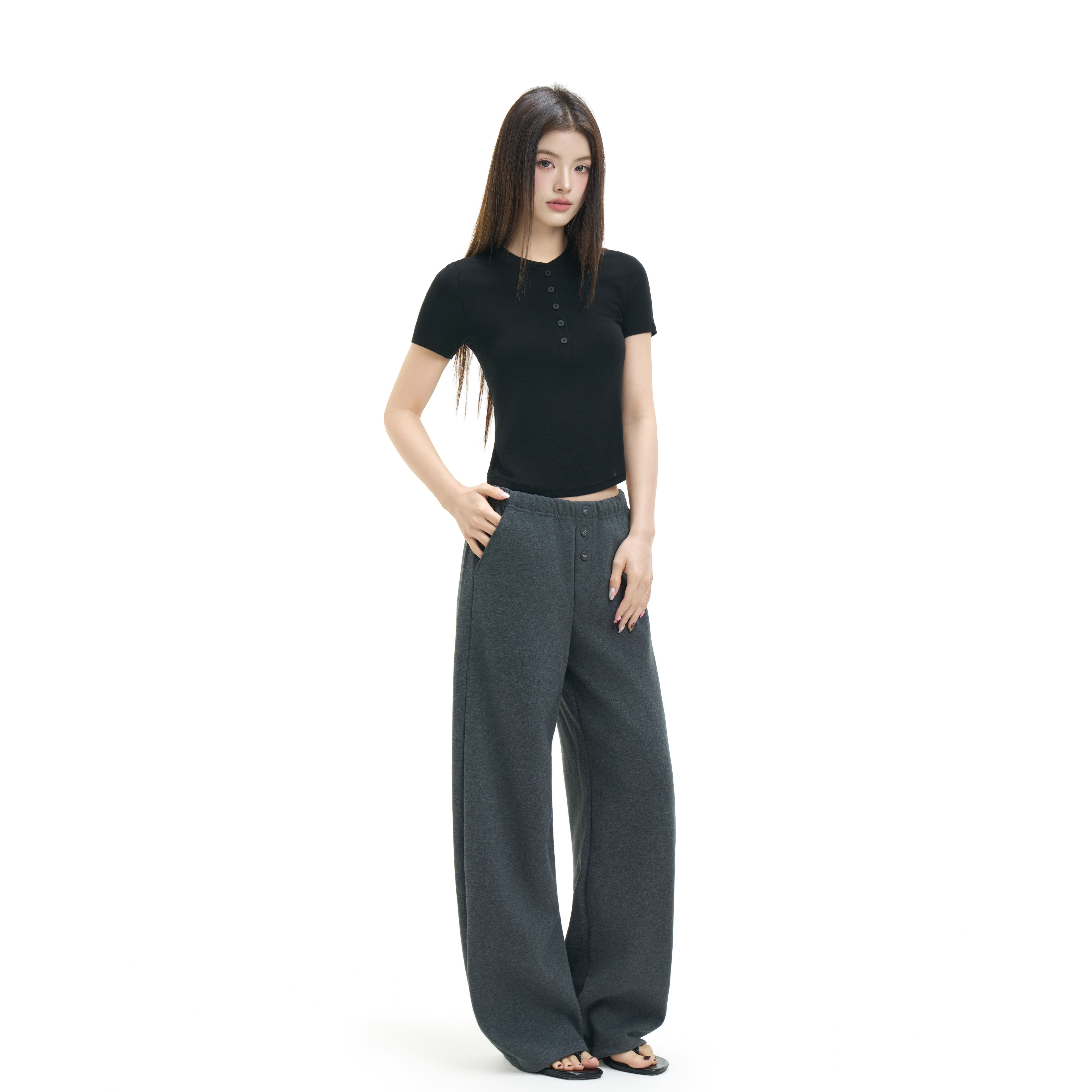 --------------------- Sdd Anerog休闲宽松直筒弯刀裤显瘦纽扣运动九分裤女 【原售价】159元 【现售价】139元 【推荐理由】