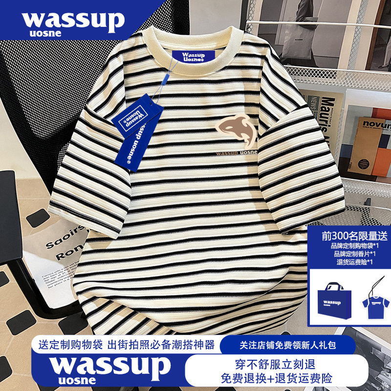 --------------------- WASSUP美式复古重磅条纹短袖t恤男士2026新款夏季高质量潮牌上衣 【原售价】129元 【现售价】69.9元 【推荐理由】