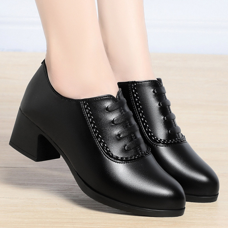 --------------------- 粗跟单鞋女2025新款春秋女士皮鞋坡跟舒适软底真皮V黑色中跟妈妈 【原售价】265元 【现售价】265元 【推荐理由】